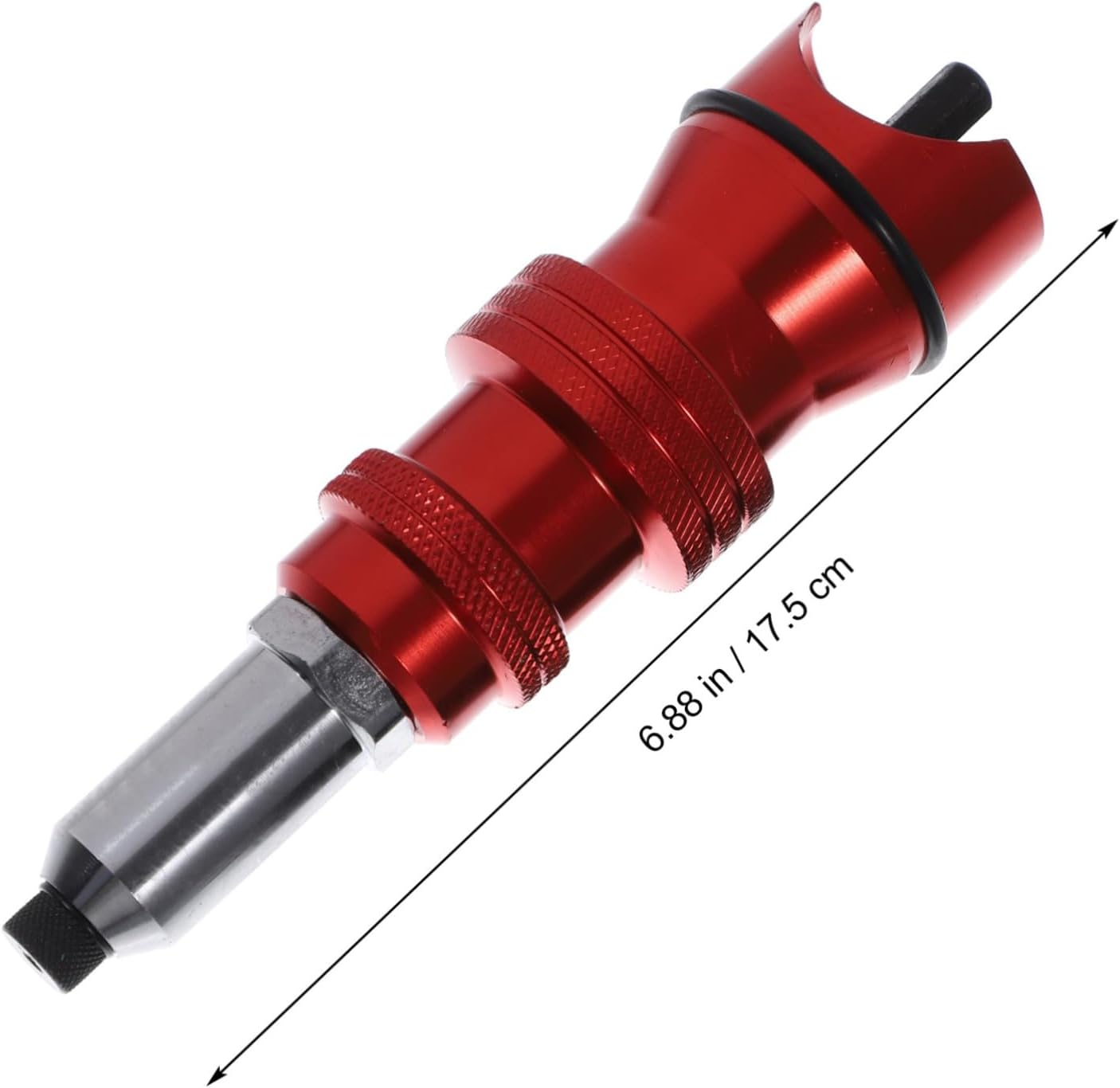 Package Include 1 x rivet adapter 1 x handle 1 x wrench 3 x rivet heads(φ2.4mm,φ3.2mm,φ4.0mm) Features -Size:17.50X4.50X4.50cm/6.88X1.77X1.77in cordless rivet adapter -Color:Red electric riveter tool -Material:Aluminum alloy rivet nut tool -Come with 3 different sizes of rivet heads (2.4mm, 3.2mm, 4.0mm) for different sizes of rivets rivet adapter for cordless drill. -No back nails, and high efficiency, riveting smoothly without burrs nut drill tools. -Easily install power rivet adapters on cordless or roped drills. Wrench can open the head easily when get stuck rivet nut drill adapter. -With quick release and installation, excellent ergonomics, great strength, it will not drop out rivet nut adapter. -More labor-saving and more convenient. It is a helper for your home and work rivet adapter for drill.Goods Informationnut riveter tool This rivet tool adapter and part can be combined with different of power tools.cordless rivet tool Made of aluminum alloy, which offers outstanding impact resistant, the solid construction is designed to against break.riveter hand tool Applicable to all kinds of sheet metal,