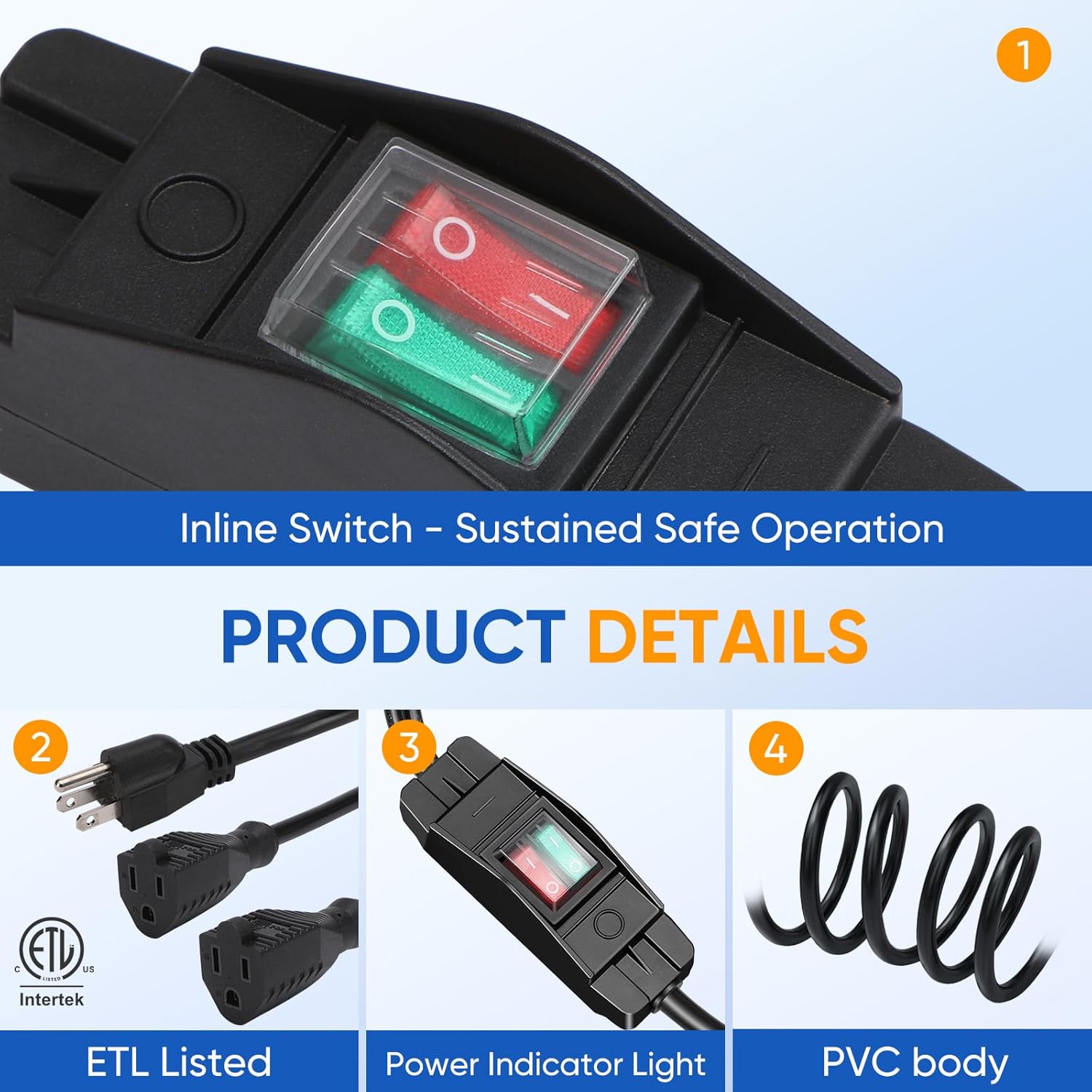 • Versatile for Indoor and Outdoor Use - Ideal for holiday lighting, garden lights, fountains, RV fans, and more. Suitable for indoor and outdoor environments. (Note: Switches are not waterproof; additional protection recommended for outdoor use)