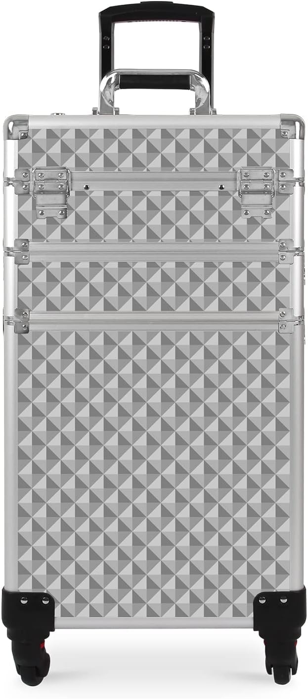 CAMORSA 3 in 1 Makeup Case Rolling Cosmetic Box ?Introduction? If you are a freelancer or professional, you must be worried about how to safely transport a large amount of cosmetics and makeup tools to your workplace. Don’t worry, the CAMORSA cosmetic case will meet your needs in this regard. Our makeup case is developed to meet the large storage needs of MUA and those who have a large number of makeup, hair and nail tools. ?Features? ?Customization Structure? Our 3 in 1 makeup case consists of 3 detachable compartments which can be freely combined as your demands. First layer detachable top section with 4 trays. Second layer has the function of dividing and contains detachable EVA partitions. The layer third is a large bottom space. ?Portable & Lockable?This CAMORSA cosmetic case equipped with four high quality 360°swivel wheels providing smooth and silent moving, more labor-saving. It also with convenient large non-slip handle attached. 4 lockable clamps to secure your items, 2 keys are included. ?Storage Solution?This beauty case is perfect for Hairstylist, Nail Technician, Dresser, Tattoo Artists. You can arranged space, not only neatly placed items and can be fixed to prevent shaking and falling damage. The large bottom space has a great storage for hair styling tools, cosmetics and nail tools. ?Durable & Protective?The outermost layer of this case made of PVC, which is Waterproof, inside is black flannel lining to prevent internal storage from scratches. All surrounding edges and corners + locks are made of aluminum alloy, with strong luster and firmness. ?Specification? Material: PVC veneer, Aluminum edge/pull rod. Dimension: 13.58 x 8.86 x 29.53inch/34.5 x 22.5 x 75cm (wheel height included) Max Handle Height: 39.37inch/100cm Top case size: 13.58 x 8.86 x 9.45inch/ 34x22x24cm Bottom case size: 13.58 x 8.86 x 18.5inch/ 34x23x47cm Detachable tray size: 12.6 x 7.1 x 3.15inch/ 32x18x8cm Weight: 13.23lbs/ 6kg ?Package Includes? 1 x Makeup case 2 x Key 4 x Wheel