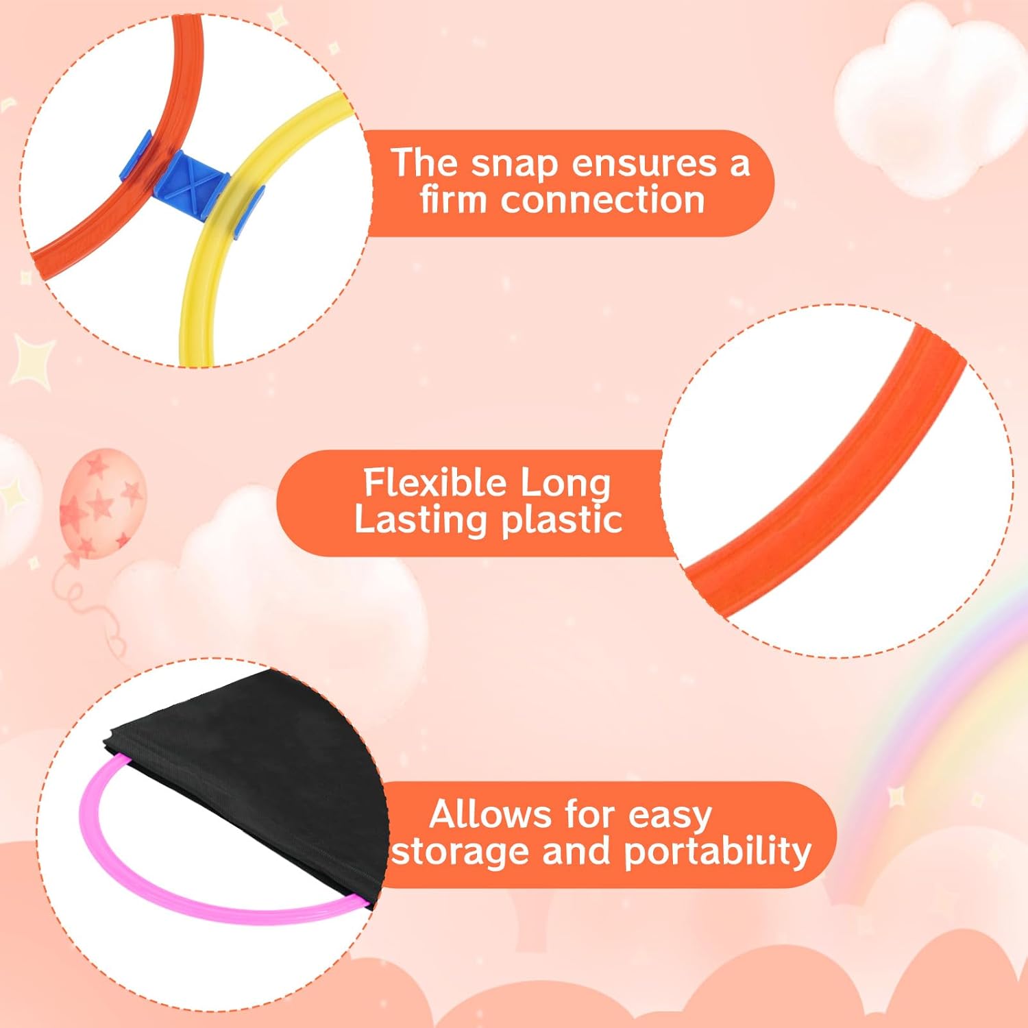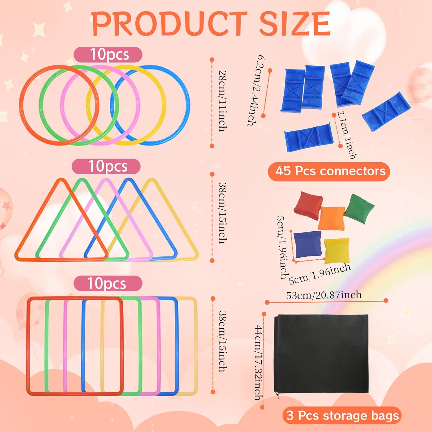 • Variety of Shapes for More Fun:You will receive a hopscotch ring game set including 10 pieces of hopscotch rings (11 inch / 28 cm in diameter),10 hopscotch triangles (15 inch / 38 cm in side length) and 10 hopscotch squares (15 inch / 38 cm in side length) with 45 connectors, 3 pcs storage bags and 10 pcs sandbag, the multicolored design and various shapes of this hopscotch ring game set give your children more creative choices to jump, connect, and play