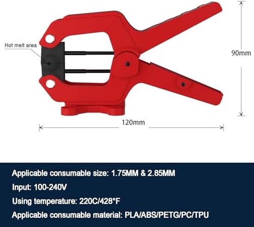 Product Details: This wire connector is ideal for all your DIY projects, easily connecting wires of the same material but different colors, allowing you to unleash your creativity in the 3D printing world. Specifications: Input: 100-240VAC Output: 24V Operating Temperature: 220℃/428°F Compatible Filament Sizes: 1.75mm and 2.85mm Size: 120*90mm Compatible Materials: PLA/ABS/PETG/PC/TPU Package Contents: 1*Wire Welder
