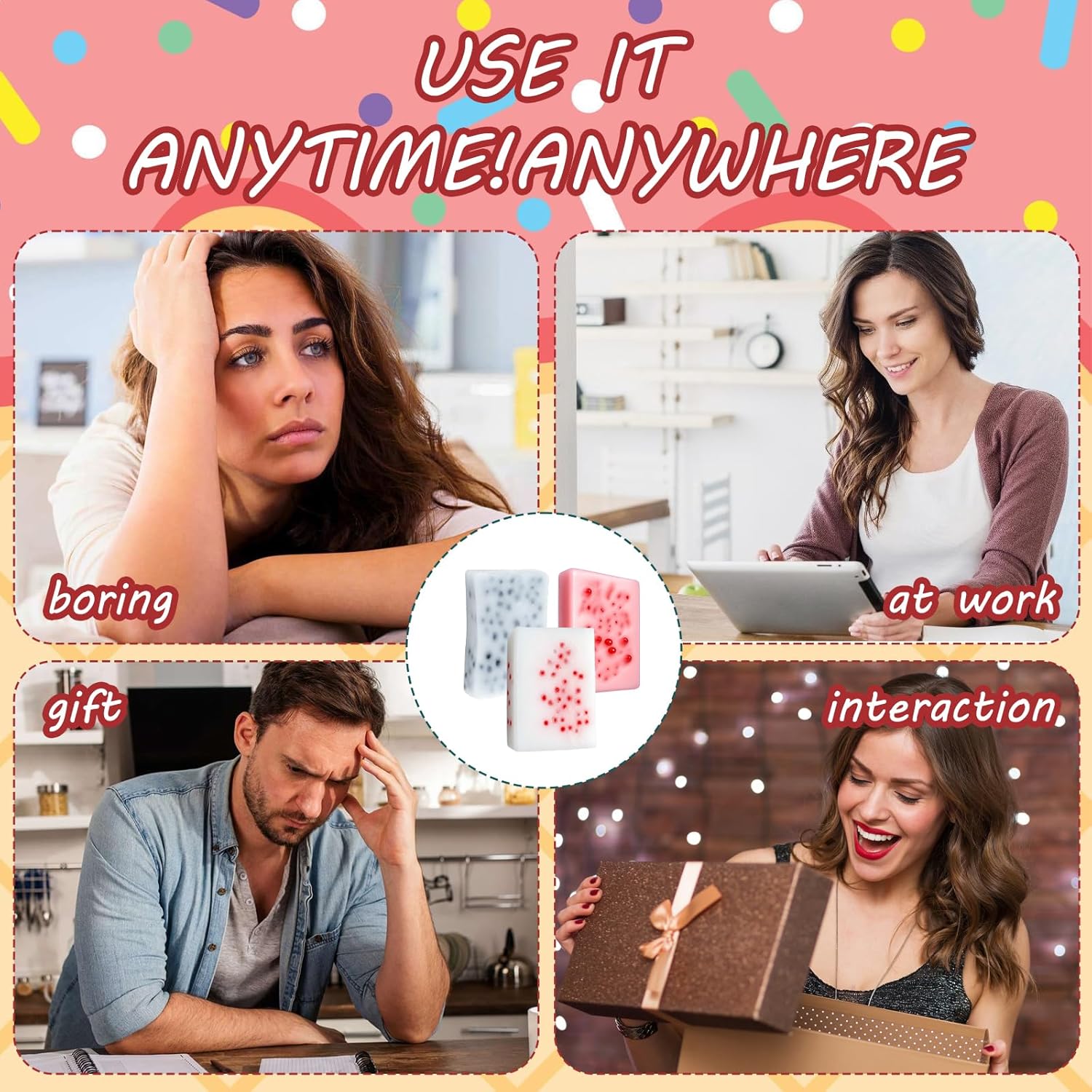 Discover the ultimate pimple popping set that offers a variety of sensory experiences. This set includes three unique pimple popper , each designed to provide a different popping sensation. The square-shaped delivers a satisfying burst feeling, while the soft skin-scratching offers a relaxing fidget option. Made from high-quality TPR material, these are durable and soft to the touch, ensuring long-lasting use.Perfect for stress relief and sensory play, these are great for fidgeting during work, study, or relaxation. They help reduce stress and anxiety by providing a sensory outlet. The compact size and easy-to-clean surface make them convenient for daily use.These pimple popping fidget are a fun and discreet way to enjoy tactile stimulation throughout the day.
