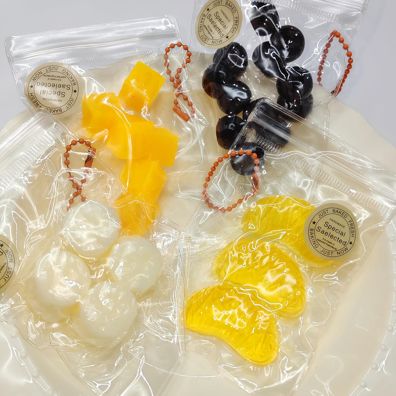 | Included Components | 4 Packs Fruit Mini Squishies |