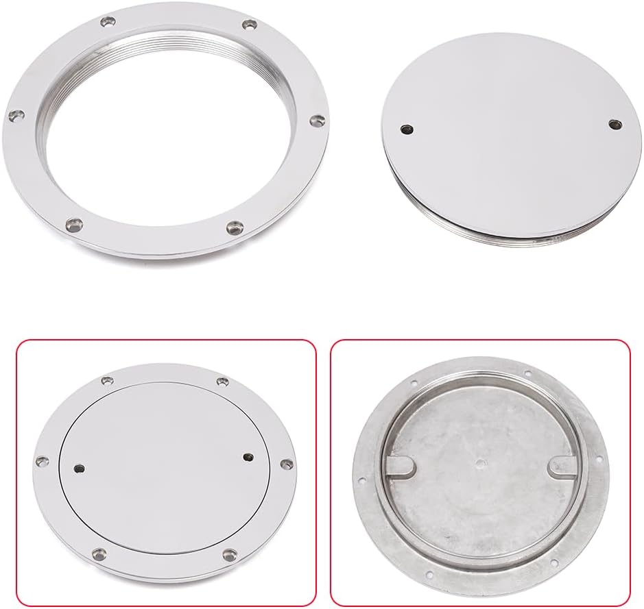 Description: This 316 stainless steel boat inspection hatch is strong, corrosion-inhibiting, and rust-inhibiting, and can adapt to various kinds of bad weather at sea, making it an excellent choice for your deck inspection. In addition, it is easy to install and widely applicable to different ships and yachts, providing more convenience for your maintenance and cleaning work. Specifications Color: Silver Material: 316 Stainless Steel, Rubber Process: Polishing Mount Type: Deck Mounted(Horizontal, Vertical) Shape: Round Installation Required: Yes Chassis Diameter: 19.7cm/7.75in Cover Plate Diameter: 15.2cm/6 in Hole Distance: 18.4cm/ 7.2 in Thickness: 5.5mm/ 0.2 in Gross Weight: 1.7kg/3.75 lbs Net Weight: 1.62kg/3.57 lbs Package Size: 21*20*5cm/8.27*7.87*1.97 in Package Included 1* Boat Inspection Hatch Chassis 1* Cover Plate Notes 1. Please carefully check if the size is suitable before placing an order. 2. Please allow the slight color difference caused by the shooting light and 1-3cm error due to manual measurement, and make sure you do not mind before you order.