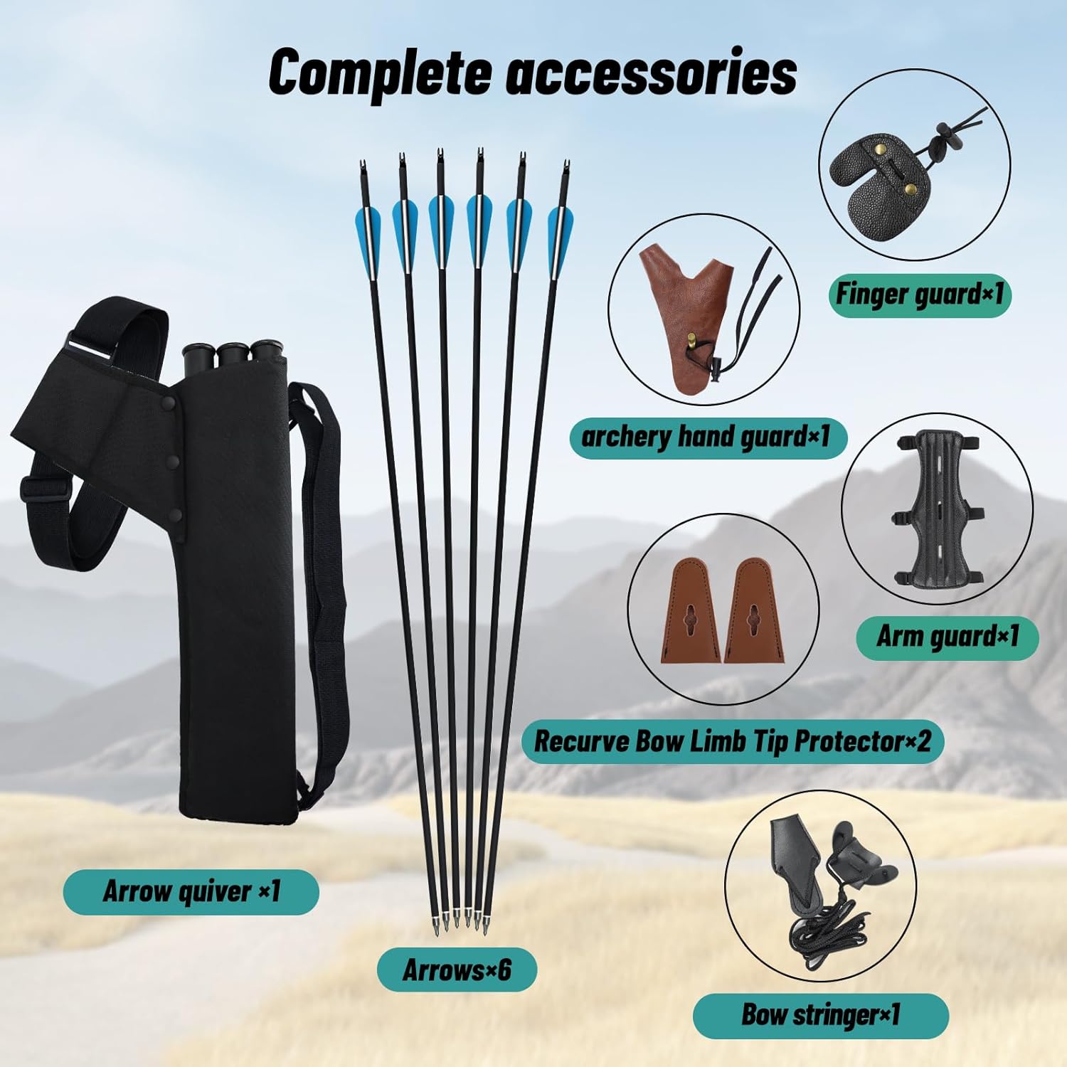 Specification: Bow length: 60 in Max Draw length: 29 in Bow riser length: 15 in Brace height: 7.5in Draw Weight : 20lbs,25lbs,30 lbs, 35 lbs, 40 lbs, 45 lbs, 50 lbs, 55 lbs,60lbs Bow String:57 in Bow riser color: Green Bow limb color: Black Bow String Material: Dyneema Bow Riser Material: High-density technology wood Bow Limbs Material: Black glass fiber + bamboo sheet (high temperature and high pressure pressing) Package : 1 x Takedown Long Bow 1 x Bow Stringer 1 x Arrow Rest 1 x Arm guard 1 x Archery Hand Guard 1 x Finger Guard 2 x Bow Limb Tip Protector 6 x Archery Arrows 1 x Arrow Quiver Features: 1.Right hand bow: Hold the bow with your left hand and pull the string with your right hand. 2.Take down design makes it easily to be carried for outdoor sports or hunting. 3. The high-quality bowstring is strong , which is more conducive to the accuracy of arrow shooting.