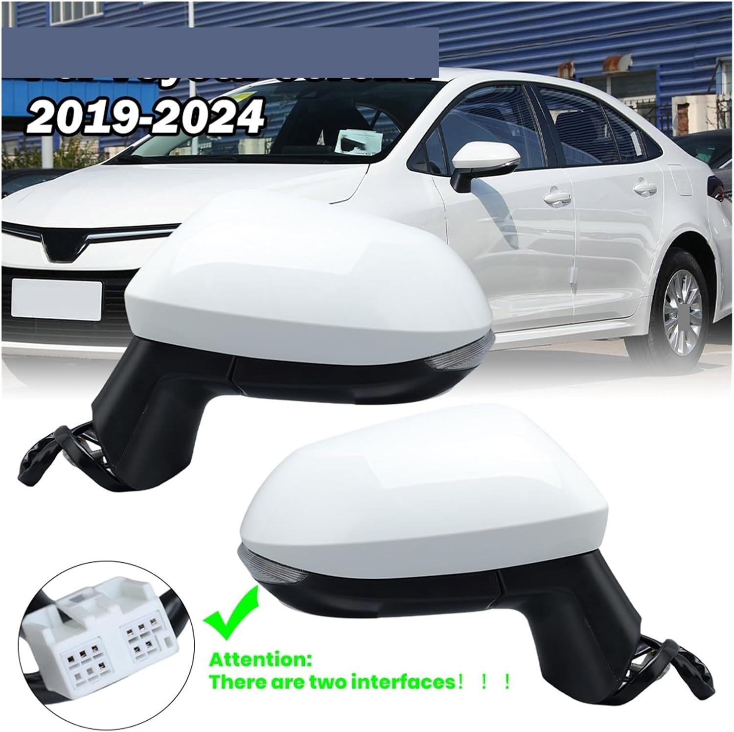9 Pin Rear View Mirror Assembly Compatible with Toyota Corolla E21 E210 MK12 2019-2024 interface white blind spot light car accessories Function: with blind spot light, power adjustment on the glass, flashing lights, fusion assist, electric folding, heating, European interface. Mounting: Compatible with Toyota Corolla E21 E210 MK12 2019 2020 2021 2022 2023 2024. NOTE: There are two interfaces!! ! Please note that if your rearview mirror does not have other functions of this product, these functions will not work after installation. Please confirm whether the functions match your rearview mirror before placing an order. *Before buying, please confirm whether the product matches your car and pay attention to whether the interface matches your car interface. If you are not sure if you match, you can provide us with pictures of the car and VIN code to help you. Welcome to my store. I'm glad to serve you. We provide high quality products and warm service. Our 24-hour online customer service is always ready to answer your questions. We wish you a pleasant shopping experience!