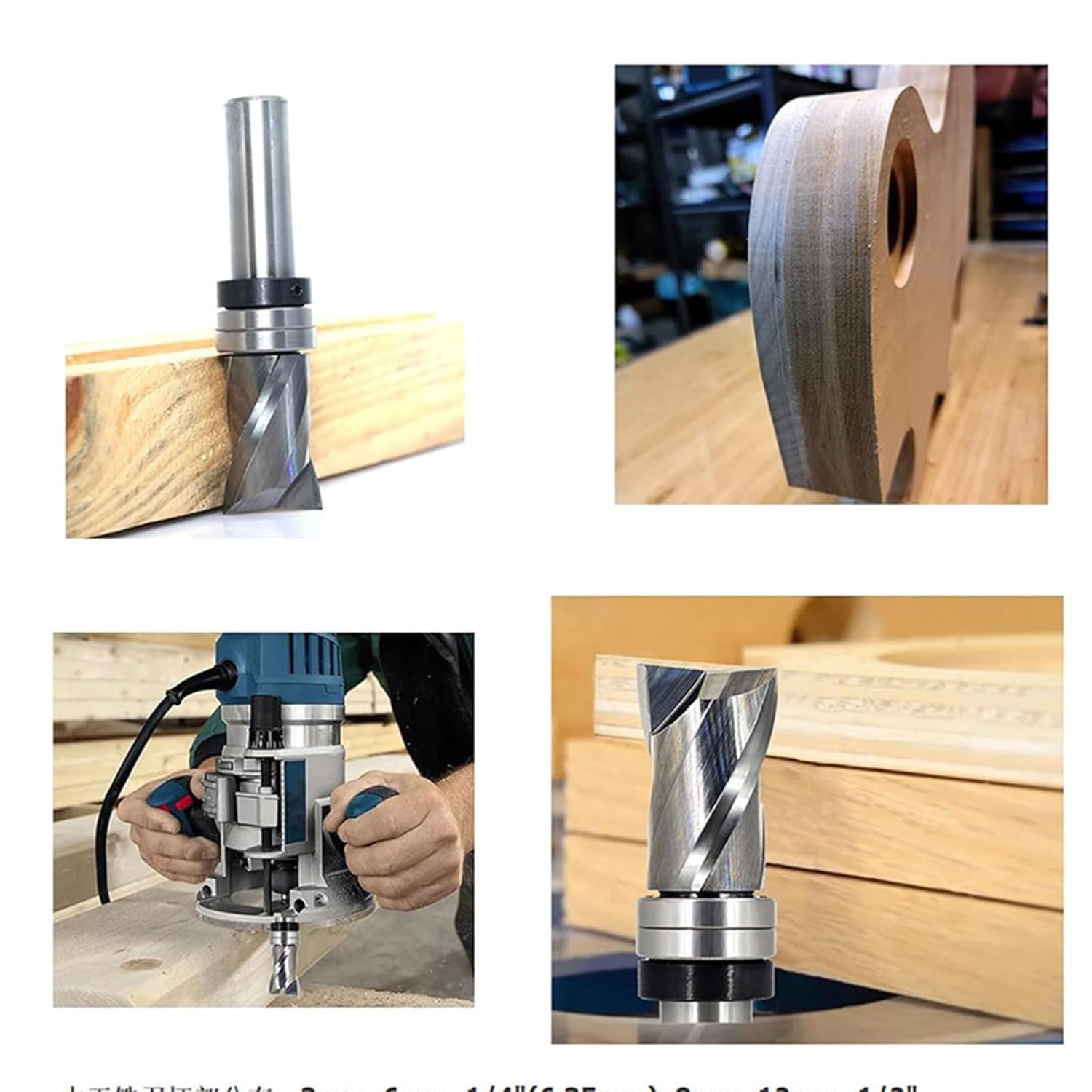 Accuracy Spiraling Router Bit for Wood Trimming Alloy Steel Cementite Matter Efficient Chip Removal and Stable Border CuttingFeatures:The spiraling planer drill adopts a spiraling design, which can achieve efficient woodworking processing, minimize resistance, and achieve smoother cutting. This woodworking tool features a bottom chip removal and a hard alloy structure, ensuring chip costless process, extended durability, and precise border , achieving grade results. Very suitable for enthusiasts, and furniture manufacturers for fine wood border refining and decorative milling applications. This spiraling router is perfect for making cabinets, hardwood floor joints, or complex wooden decorations. By providing consistent smooth cutting on , plywood, density fiberboard, and other woods, post-processing work is reduced. Specifications:Matter: Alloy Size diameter: 12mmlength: 25.4mm matter: hard metal steelCutter tip R corner mm: 0.2mm hardness: hard metal steel shape: rhombusCutting corner °: 0Processing diameter mm: 1-20mmCutting depth mm: 25mmEffective working length mm: 25Product Features:trimming, furrows, bottom furrowsHandle connection approach: standard short tapered handleRotation direction: Rotate counterclockwiseNumber of shears: 2Number of slots: 2Package Includes:1xSpiral trimming cutterNote:Please allow 1-2cm errors due to manual measurement. Please allow for slight color differences due to different display resolution