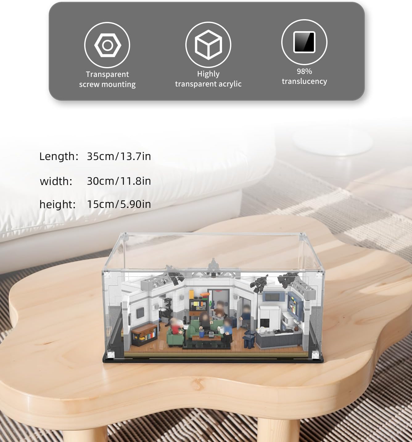 ASSEMBLY METHOD - Our acrylic display box requires no glue, no screws or other installation parts, just simple splicing, and the entire display box can be completed in 2-5 minutes.