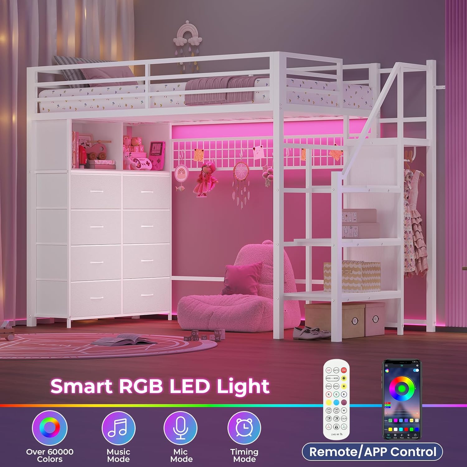 | Other Special Features of the Product | Stairway Loft Bed, Loft Bed with Dresser (8 Large Fabric Drawers )and 2 Storage Shelves, With Safety Guardrail and Storage Stairs, Loft Bed with Wardrobe,LED Lights,Under-bed Space,No Box Spring Needed |