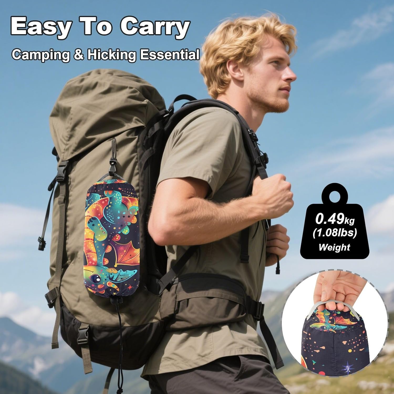 Reliable Outdoor Relaxation This practical hammock delivers comfort and convenience for outdoor enthusiasts using quality materials and thoughtful engineering. Technical Details Material: 100% polyester (210T taffeta body; 600D polyester straps) Hardware: Aluminum carabiners Load Capacity: 500 lbs (227 kg) Packed Size: Approx. 7 x 5 inches (18 x 13 cm) Durable Construction Reinforced triple-stitched seams at stress points Quick-drying material Practical Applications Camping and backpacking Hiking rest breaks Beach and park outings Family relaxation Travel and festivals Package Includes 1. Hammock 2. Straps (2m each) 3. Carabiners 4. Storage sack Designed for Easy Use Sets up in minutes without tools. The balanced design provides stable support, while the breathable fabric prevents overheating during extended use.