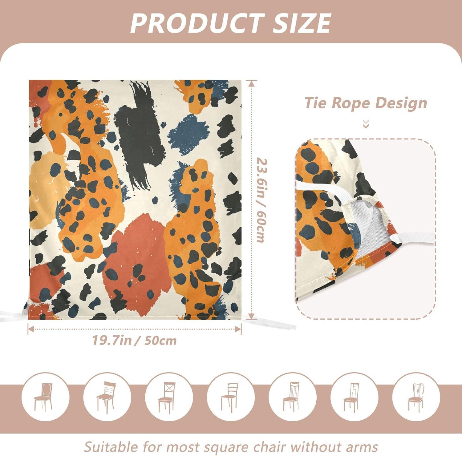 Chair Cover Material made of polyester,comfortable and soft to touch,reusable and suitable for long term use Features easy to install and remove, tie rope design at the bottom,machine washable Stylish Chair Decoration With beautiful pattern,it can be used for family party/ birthday party/wedding/ holiday party to add atmosphere, also can be used for chair decoration in living room, dorm, kitchen dining room,bedroom to bring protection to the chair while avoiding stains to dirty the chair back. Easy To Care Machine washable, Not washing with hot water, Not bleaching