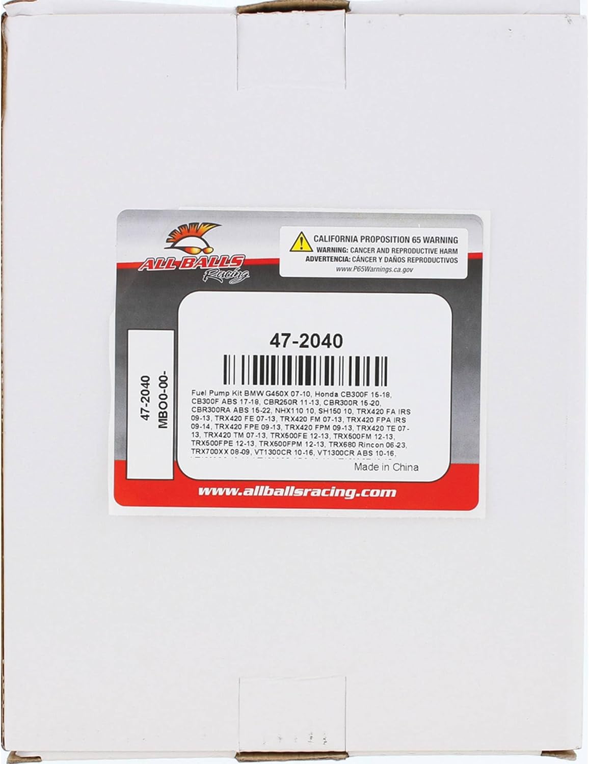Verify the part fits before purchasingFuel Pump Kit for SuzukiApplications:BMW G450X 2007 - 2010Honda CB300F 2015 - 2018, CB300F ABS 2017 - 2018, CBR250R 2011 - 2013, CBR300R 2015 - 2019, CBR300RA ABS 2015 - 2019, NHX110 2010, PCX150 2013, SH150 2010, TRX420 FA IRS 2009 - 2019, TRX420 FA Solid Axle 2014 - 2019, TRX420 FE 2007 - 2019, TRX420 FM 2007 - 2019, TRX420 FPA IRS 2009 - 2014, TRX420 FPA Solid Axle 2014, TRX420 FPE 2009 - 2013, TRX420 FPM 2009 - 2013, TRX420 TE 2007 - 2016, TRX420 TM 2007 - 2019, TRX500FA 2015 - 2019, TRX500FE 2012 - 2019, TRX500FM 2012 - 2013, TRX500FM IRS 2015 - 2019, TRX500FM Solid Axle 2014 - 2019, TRX500FPE 2012 - 2013, TRX500FPM 2012 - 2013, TRX680 Rincon 2006 - 2019, TRX700XX 2008 - 2009, VT1300CR 2010 - 2016, VT1300CR ABS 2010 - 2016, VT1300CS 2010 - 2014, VT1300CS ABS 2010 - 2014, VT1300CT 2010 - 2015, VT1300CT ABS 2011 - 2015, VT1300CX 2010 - 2019, VT1300CX ABS 2010 - 2019, VT750C 2010 - 2019, VT750C2 2010 - 2019, VT750CA 2012 - 2014, VT750CS 2018 - 2019, VT750RS 2010 - 2013Husqvarna TE450 2011 - 2013, TE511 2011 - 2013, TXC511 2012 - 2013Kawasaki ER-6N 2009 - 2010, EX 650R 2006 - 2011, KLE650 2007 - 2019, KX250F 2011 - 2016, KX450F 2010 - 2018, Z125 PRO 2017 - 2019KTM Duke 690 2016 - 2018Suzuki LT-A400F 4WD King Quad 2008 - 2018, LT-F400F 4WD King Quad 2008 - 2018, LT-R450 2006 - 2009, LT-Z400 2009 - 2014, RMX450 2010 - 2017, RMZ250 2010 - 2017, RMZ450 2008 - 2018, TU250 2009 - 2017