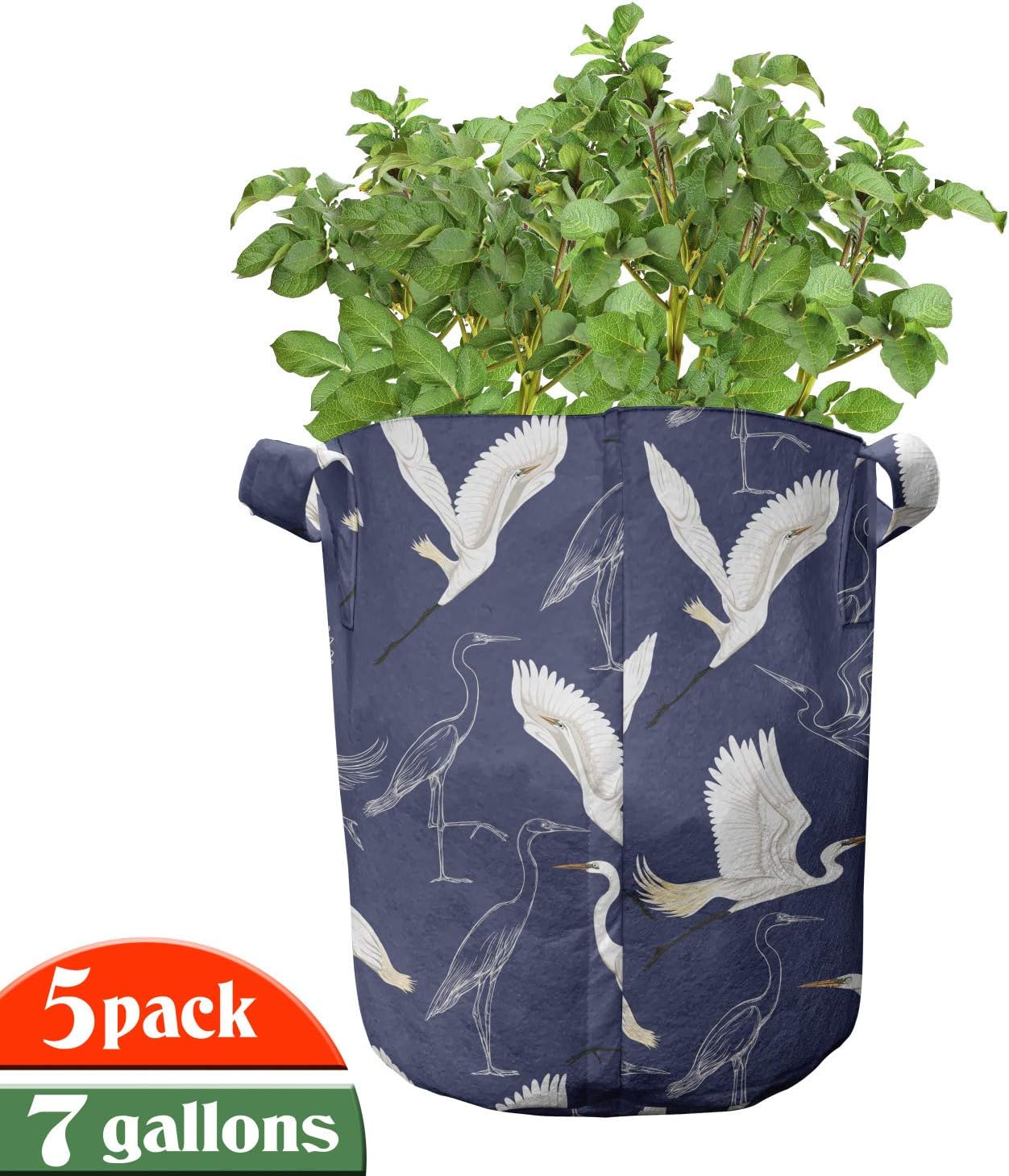 5 PACK - Printed grow pots. Size of the bags: 13.7" W x 12.6" L. 7 Gallon. Easy to move around. MADE FROM - High quality 100% thickened non-woven polyester fabric. Perfect for container gardening. FEATURES - Heavy-duty handles. Stain & water-resistant. Can be used up to 3 years. No toxic dyes. INDOOR GARDEN - Grow a variety of plants like tomatoes, peppers, various greens, root vegetables. PRINTED - With state of the art digital printing technology. Long-lasting bold colors & clear image. Do you want to learn the decorative way to grow healthy plants? The answer is; these printed fabric pots pack of 5! This portable fabric bag is made from nonwoven polyester to grow any kind of plant. These bags are environment-friendly and allow your roots to breath. With its smart design, there is more room to grow for your flowers, plants, beans, garlics, patatoes, salad leaves, eggplants, peas, onions, beetroots, tomatoes, mint, sage, herbs, strawberries, cress, chilies and peppers. Allows your plant's roots to breathe. Develop strong roots and keep them well with these printed bags. Move your bag full of soil and plants with large sturdy handles; minimalize the risk of transplant shock. Keep your plants warmer in the winter and cooler in the summer. Improve overall root structure and provide better use of water and nutrients. Besides being that much useful, these planting bags are also decorative! Add color and style to anywhere you like with thousands of different patterns. As well as decorating your garden, you can create a stylish accent for indoor use, too. Our portable fabric grow bags are washable, easy to clean for reuse. Save money and save your plants by these fabric pots. The digital images we display have the most accurate color possible, however due to differences in computer monitors, we cannot be responsible for variations in color between the actual product and your screen.