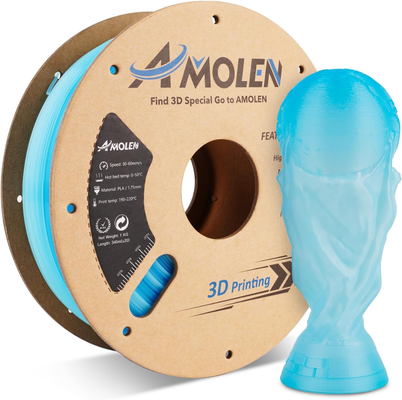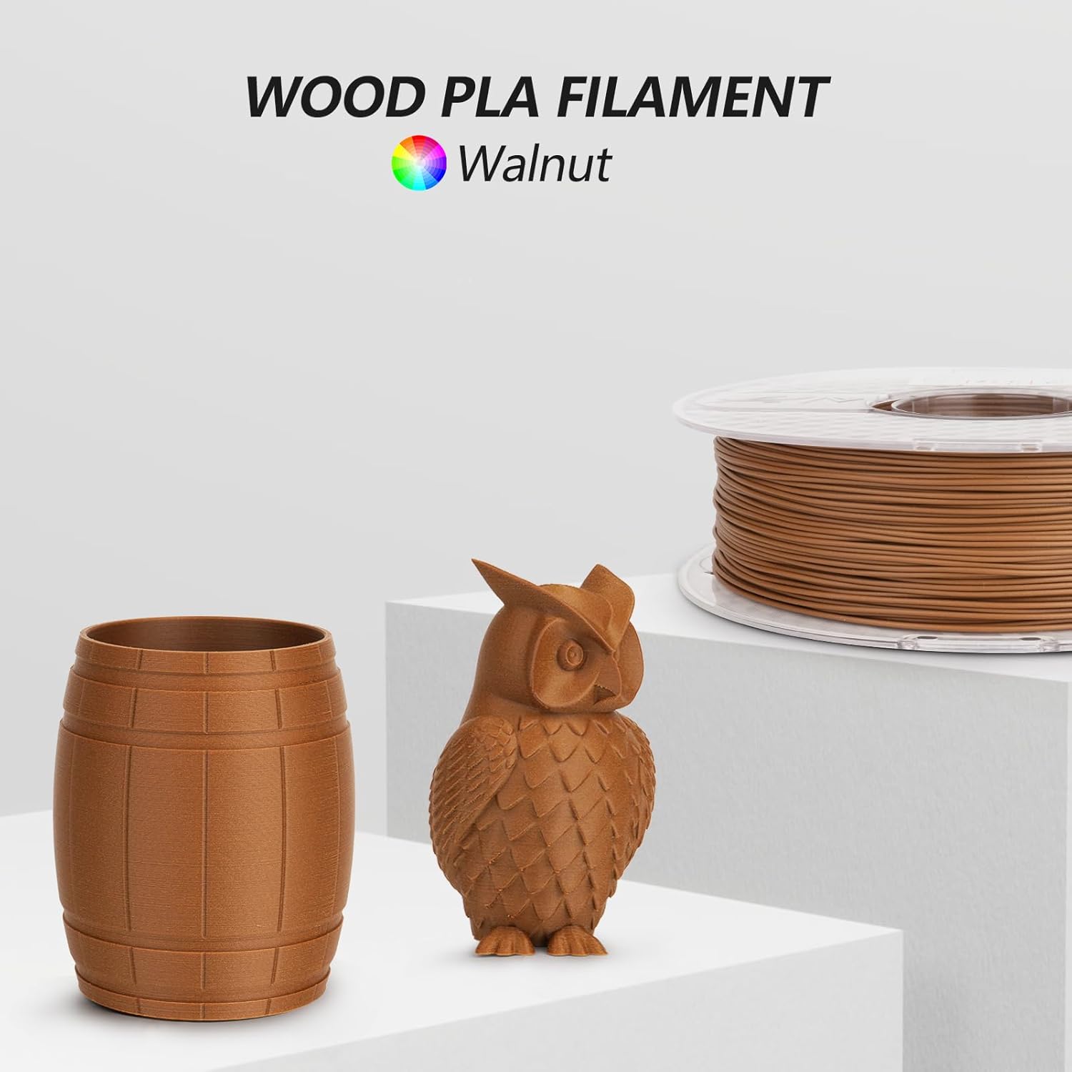 AMOLEN 3D Printer Filament, PLA Filament 1.75mm, Dark Wood Walnut & Transparent Blue White