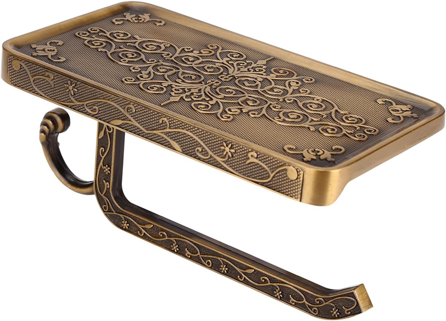 Description:This is a vintage paper holder with brass body and antique style finish. Simple and delicate design makes it a perfect combination of art and life. You can use it to hold the paper and also place your phone conveniently in toilet or bathroom.Features: Brass body construction with antique style finish, a practical gadget and decor in toilet or bathroom. High-quality surface finishing materials protect from scratches and rust. Elegant and delicate in details, perfect combination of art and design. Quadrate outline conveys premium sense, adapting with the minimalistic taste. Complete with mounting accessories.Specifications:Name: Toilet Paper HolderCondition: Brand NewMaterial: BrassFinishing: Antique StyleColor: Chrome Color, Antique Color, Golden Color, Rose Golden Color(optional)Shelf Size: Approx. 18.3 * 10 * 2cm / 7.2'' * 3.94'' * 0.79''Height: Approx. 8cm / 3.15''Paper Holder Bar Length: Approx. 13.8cm / 5.43''Package Included:1 * Bathroom Toilet Paper HolderNotes:1. Monitors are not calibrated same, item color displayed in photos may be showing slightly different from the real object. Please take the real one as standard.2. Please allow 0~1 inch error due to manual measurement. Thanks for your understanding.