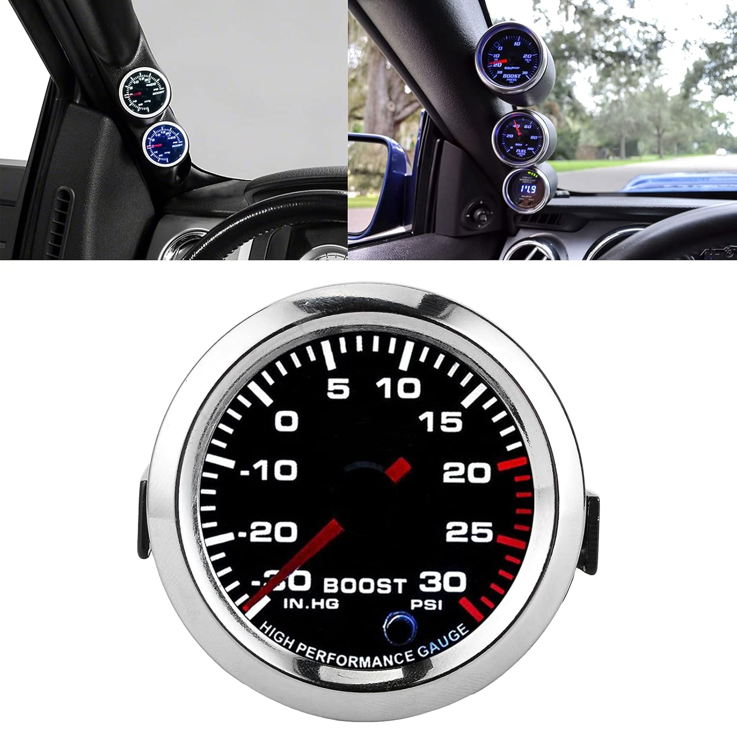 Specification: Item Type: Turbo Boost Gauge Material: Plastic Voltage: 12V Color: 7 Color Gauge Measures Range: -30?30 PSI Fitment: Fit for Car /Truck/ Boat / Generator Engine/Gasoline Engine Wiring: Red-Positive Black-Negative Green-Sensor Package List: 1 x Turbo Boost Gauge 1 x Hose 1 x Tee Connector 1 x Connector 1 x Boost Sensor 1 x Power Cord 1 x Manual