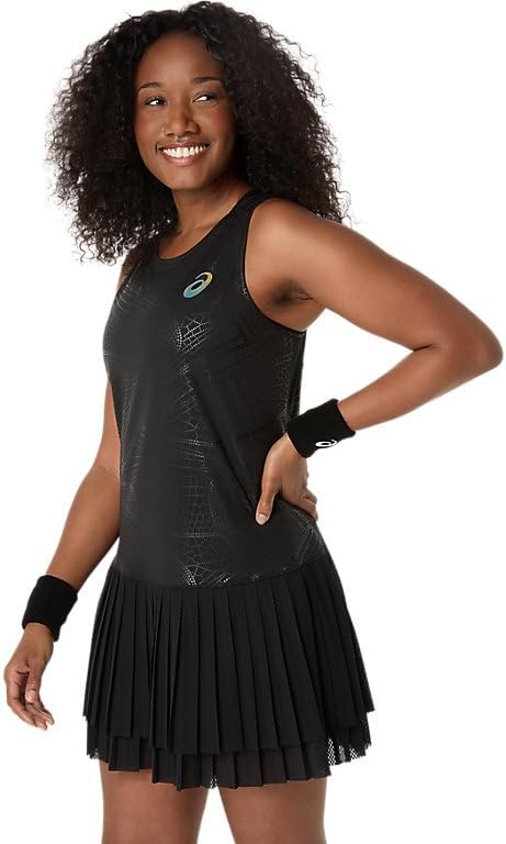 Uplift your game with the MATCH DRESS from the NIGHT ENERGY Collection, featuring an all-over embossed dragonfly print. Made from a soft, comfortable knit material with ACTIBREEZE technology, this dress provides superior breathability to keep you dry as you focus on your performance.The design showcases an eye-catching iridescent ASICS logo that pairs beautifully with the shiny all-over dragonfly print, reflecting the grace and elegance of these creatures. The pleated double-layer mesh skirt mimics the delicate wings of the dragonfly, adding a dynamic flair to your movement on the court.