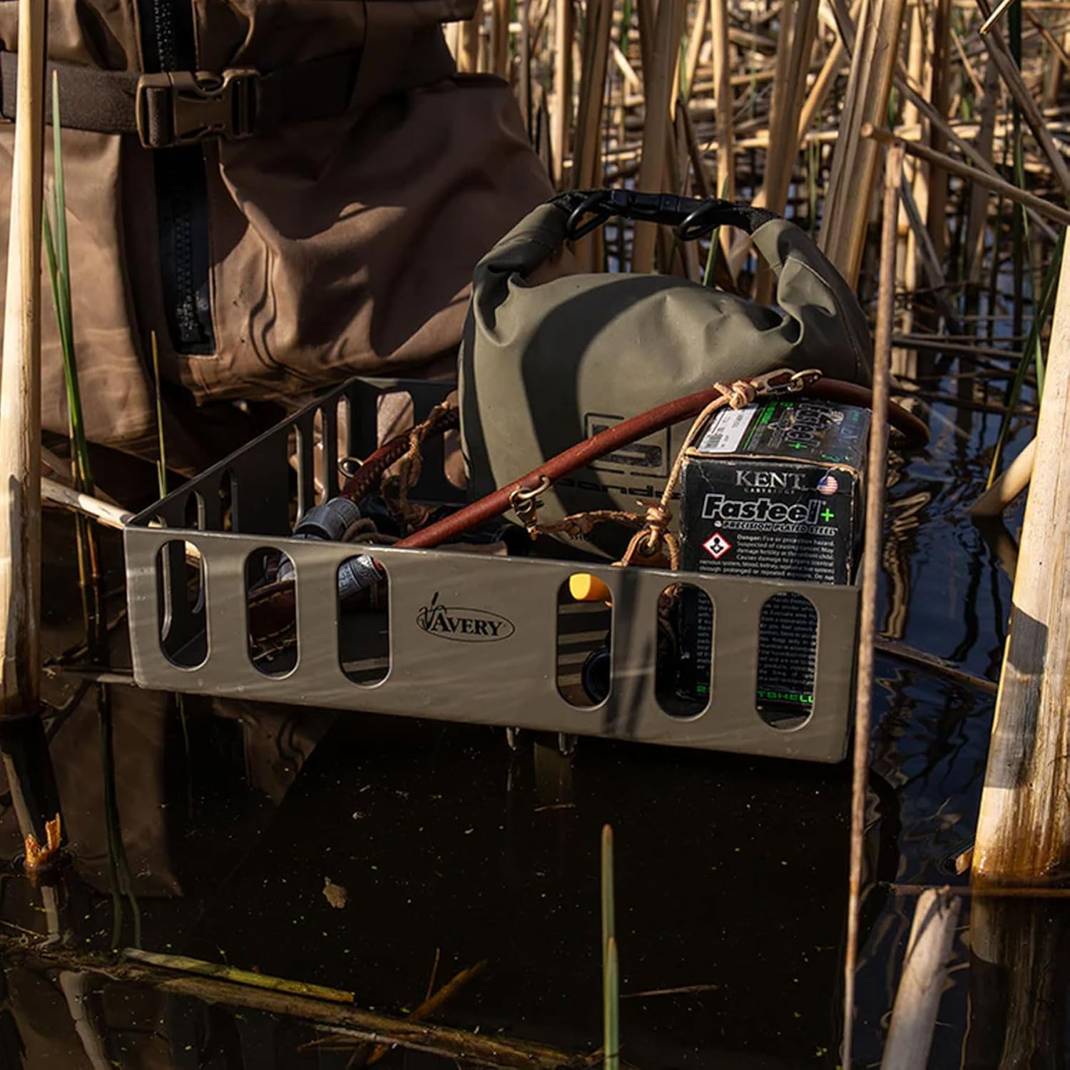 AVERY MARSH TABLE (90065): The Avery Marsh Table is a smart, lightweight solution for keeping your hunting essentials within reach during waterfowl hunts. Designed with a tough aluminum frame, it's built to handle rugged marsh terrain while remaining easy to transport. The adjustable height feature, ranging from 39" to 47", allows you to set it to your preferred level for quick access to gear. With a 12" x 12" flat top and integrated side ridge slats for hooking attachments, this piece of outdoor gear offers a practical surface to keep ammo, tools, and other hunting accessories organized. The adjustable shoulder strap ensures easy carry, and its solid footing holds firm even in soft slough ground. Be sure, this is a dependable addition to any waterfowl hunter's kit. MAIN FEATURES: - Durable and Lightweight Aluminum Frame Design; - Quick-Adjusts From 39" to 47" in Height; - Adjustable Shoulder Strap For Easy Carry; - Holds Firm In Slough Ground; - 12" x 12" Flat Top Table Design For Holding Essentials; - Integrated Side Ridge Slats For Hooking Attachments; - Provides Hands-Free Storage in the Marsh; - Weight: 5.3lbs.