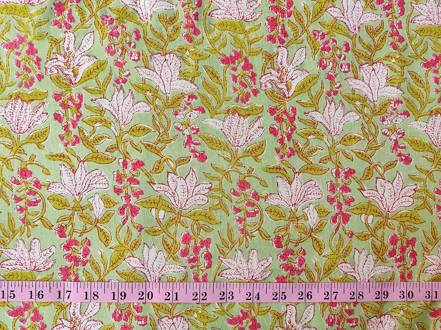 This is a precut piece of 5 yards of an Indian cotton fabric. This is a hand printed fabric using wooden blocks or screens. The width of the fabric is 42 inches. It is a pure cotton yardage and is a thin light weight cotton. Ideal for garments and light home linen. Use this unique and beautiful printed cotton for your next sewing project. If you order 2 quantity, you will receive 2 pieces of cut fabrics of 5 yards each. You will not receive a continuous yardage.