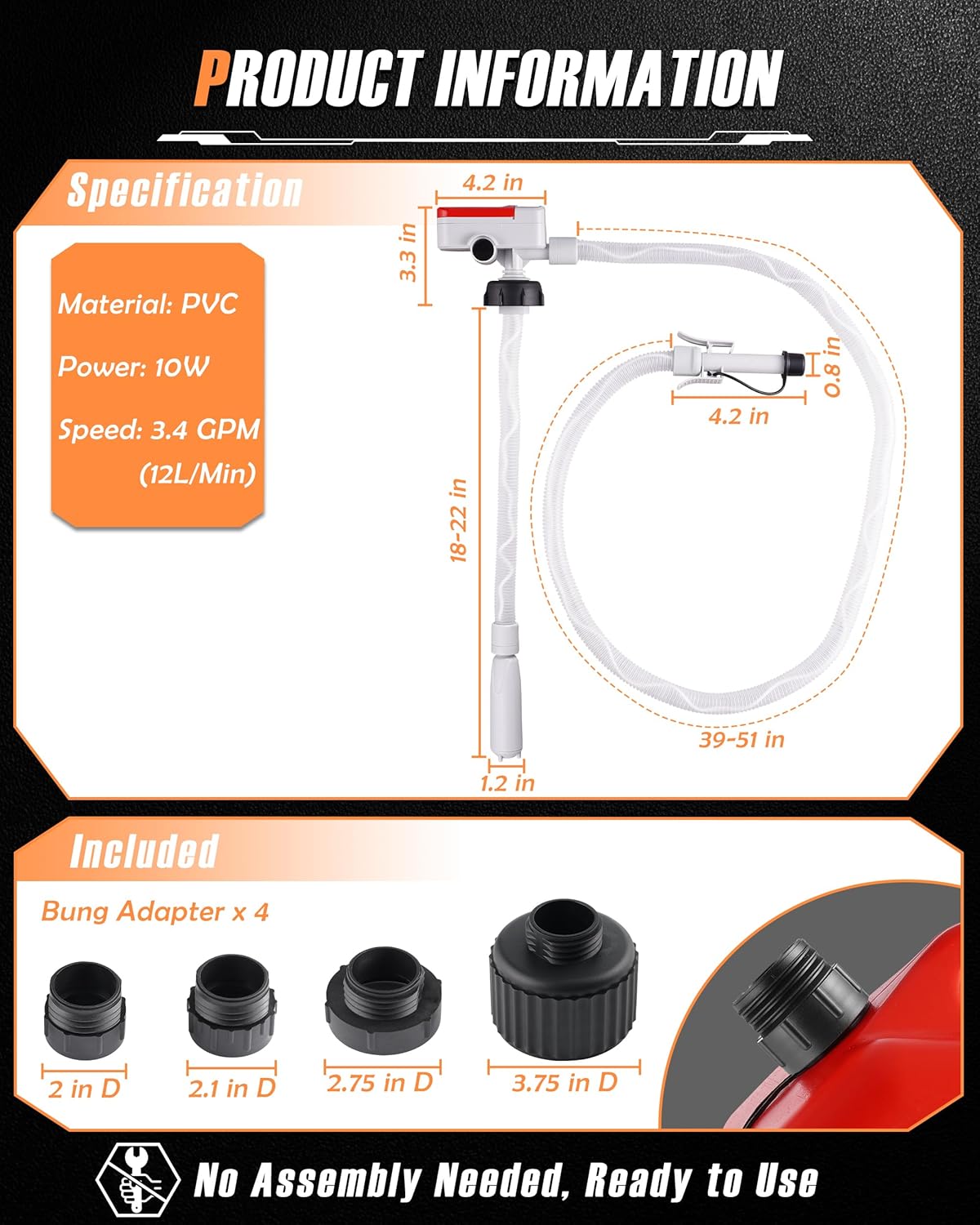 | Included Components | 4 Adapters, Fuel Transfer Pump |