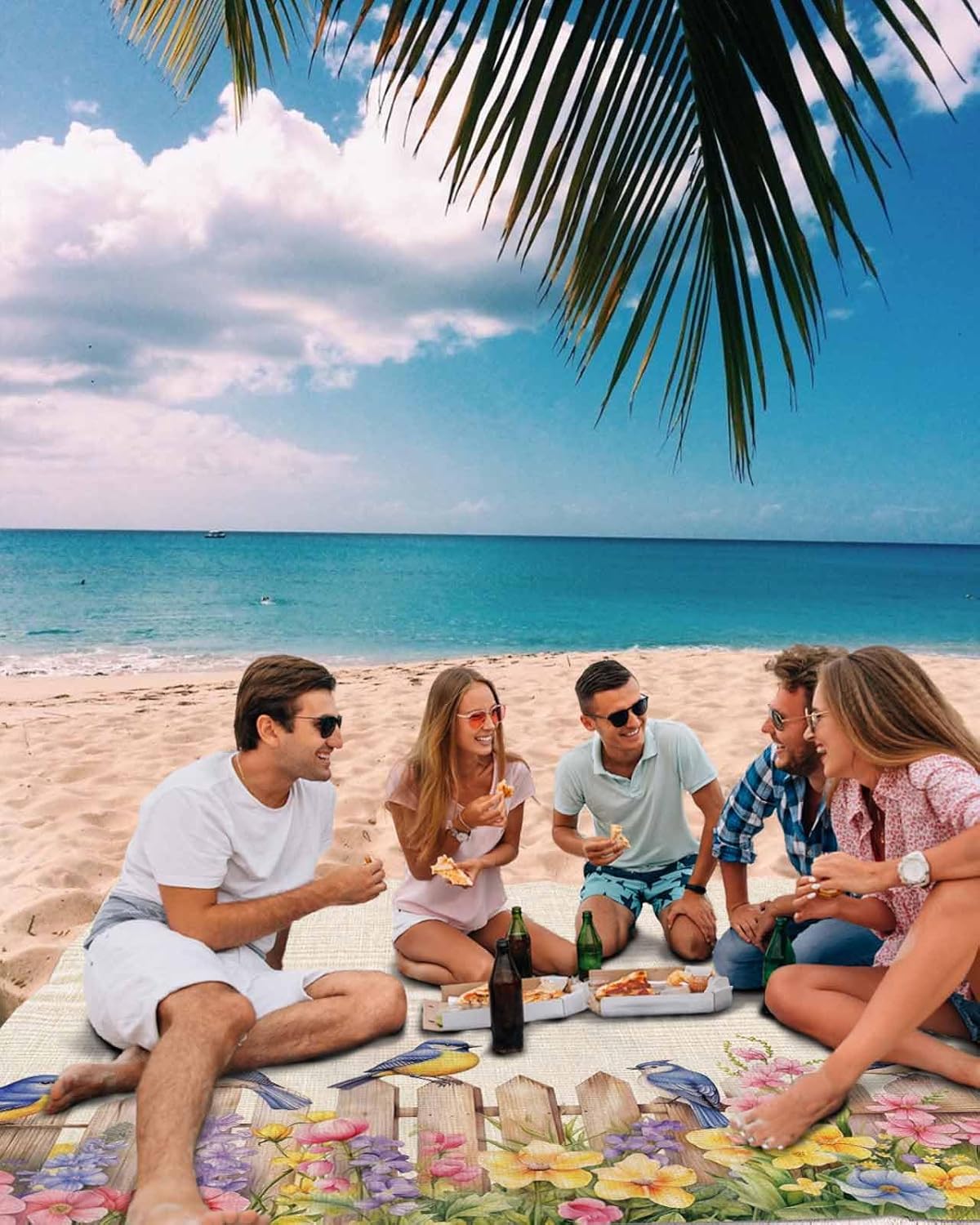Ideal for the beach, perfect for your summer sea beach vacation!Reasons for needing a beach blanket: Not just a beach mat, it can be used for all kinds of outdoor activities, and it can also be used indoors. It is suitable for all seasons, light and easy to carry, making your every trip comfortable and pleasant.About Beach BlanketMulti-function: Picnic Mat:Take your kids to the park for a picnic on weekends, a high-quality picnic mat can make your time outdoors even more enjoyable. Oversized picnic mats can accommodate many people, create a comfortable resting environment, and allow you and kids to enjoy food and play on the pad.Yoga Mat: Beach mat can be used as an outdoor yoga mat. Doing yoga in the cool morning outdoors, allows you to breathe fresh air, and make the day full of energy; do yoga in the evening, accompanied by the sunset afterglow, relieve the fatigue of the day and enjoy inner peace.Camping Mat: Beach mat can be used as an outdoor yoga mat, allowing you to breathe refreshing air in the cool morning outdoors, arouse the energy of the body, and make the day full of energy; do yoga in the evening, accompanied by the sunset afterglow, relieve the fatigue of the day and enjoy inner peace.Triple protection: Waterproof: Beach mat has a good waterproof effect. Water will not penetrate it, but will slide off the surface. You don't have to worry about getting the pads wet.Windproof: Stakes and sand pockets provide double stability for the beach mat, preventing the mat from being easily blown away by the wind, so that you can leave with peace of mind and do what you want.Sand-proof: Spreading pad on the beach can create a sand-free environment, and prevent the sand from sticking to the body and making people uncomfortable.