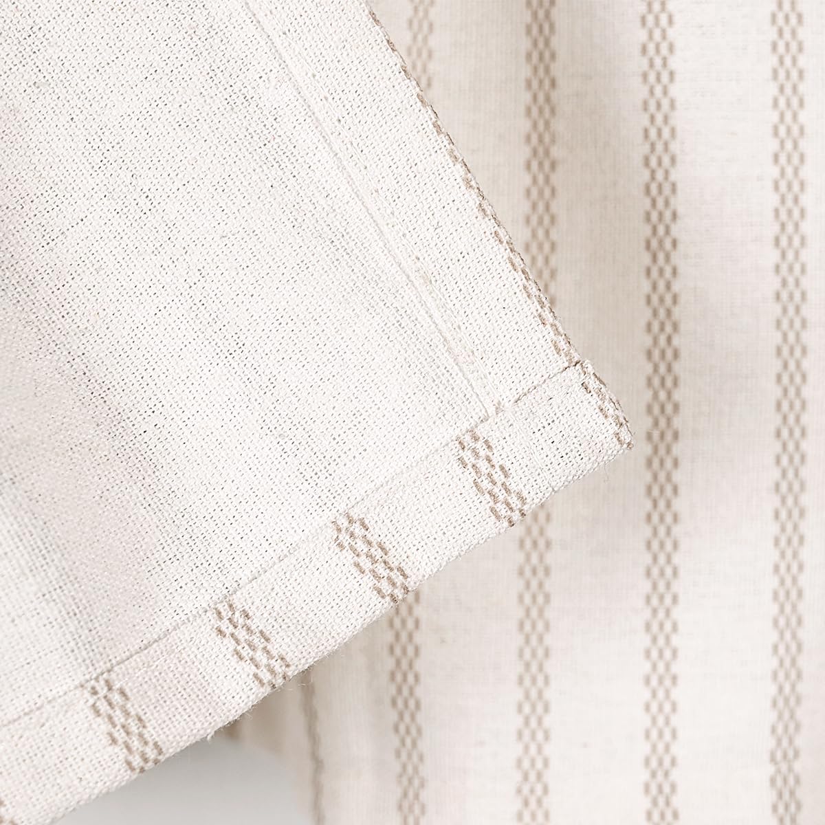 Beige Farmhouse Valance and Shower Curtain with Button Style,Linen and Cotton Blend Fabric.