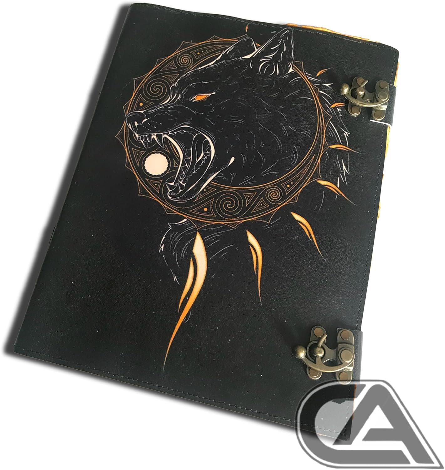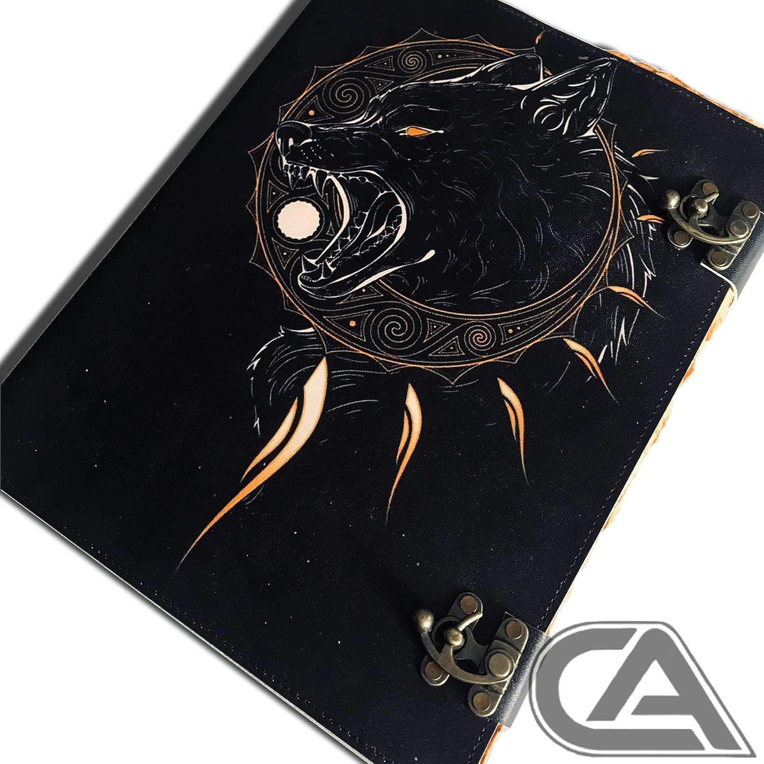 LEATHER JOURNAL FOR MEN AND WOMEN - 10X13 Inch Printed Black Wolf Journal is the perfect journal to capture your important memories in all your travels or as a daily companion. Its handmade design is stylish the rustic finish of courium artifex can accompany you to capture your thoughts. The high-quality vintage deckle paper that prevents marker bleed, pen bleed. HIGH QUALITY - The hand stitched design will last for years to come. This leather journal men and women is a perfect gift for any occasion. Courium artifex value our customers and are committed to ensuring a wonderful experience. Handcrafted journals contain acid less, handmade, archival Quality, linen - Vintage paper. This brand-new journal makes an ideal present for that special someone or simply to keep for yourself. UNIQUE GIFTS - Stunning gifts for Father, Mother, Daughter, Son, Friend all your love ones