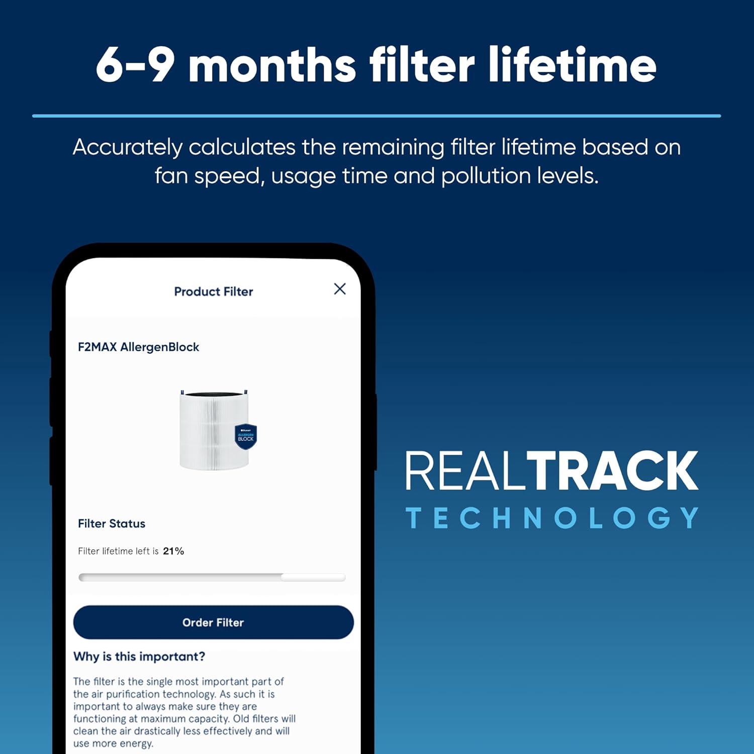 Upgrade your defenses and boost allergen protection. AllergenBlock* defense layer neutralizes over 90% of the allergen properties such as sneeze-inducing dust, pollen and pet dander that can trigger discomfort. Blue Pure 211i Max Series AllergenBlock Blueair filter is designed for optimal performance. Compatible with Blue Pure 211i Max air purifier. *AllergenBlock refers to inanimate allergens pollen, dust and pet dander. Based on ELISA deactivation testing of Pollen (Cry J1), Pet Dander (Fel d1, Can F1), Dust Mite Matter (Der f1) on the filter media in 60 minutes.
