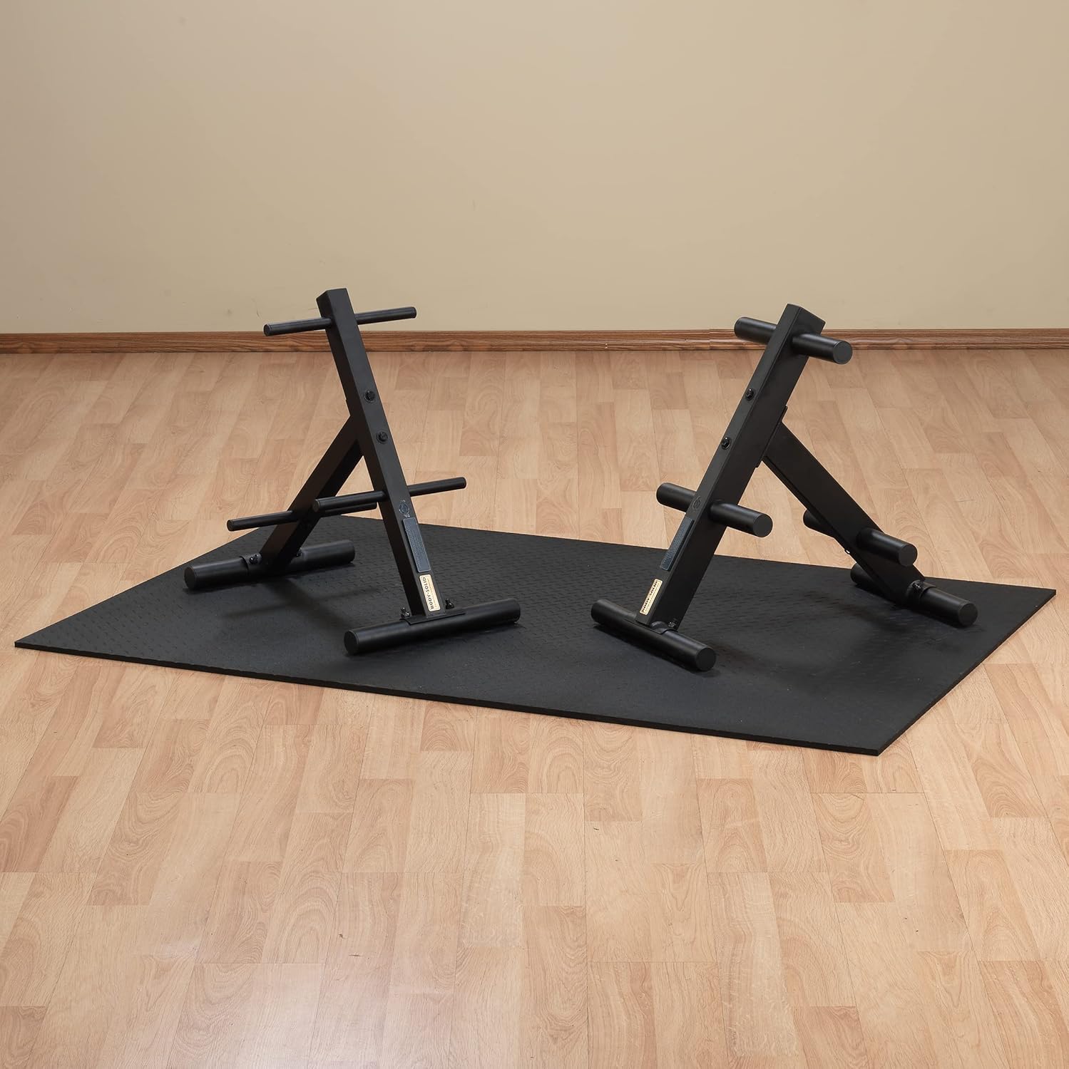Product Description Help keep your workout area safe, clean, and organized with the vertical Body-Solid Standard Weight Plate Tree (SWT14). Great for home exercise areas, this weight plate rack with 6 storage posts makes it easy to safely store and organize your weight plates all in one convenient area. The weight plate holder is designed to direct the weight load towards the center of the rack to reduce the risk of tipping and injury. The Body-Solid Powerline Standard Weight Plate Tree measures 27 by 16 by 24 inches (L x W x H) and weighs 17 pounds. It is backed by the Body-Solid Lifetime In-Home Lifetime . Body-Solid sets the standard in quality fitness and gym equipment. Amazon.com Keep your workout area safe and well organized with the Powerline SWT14 EZLoad weight tree. The SWT14 includes six storage posts for your weight plates, along with a rock-solid load design that directs the weight to the center of the tree. As a result, you can quickly store and retrieve your weight plates without fearing that the tree will tip over. Weight plates are sold separately.