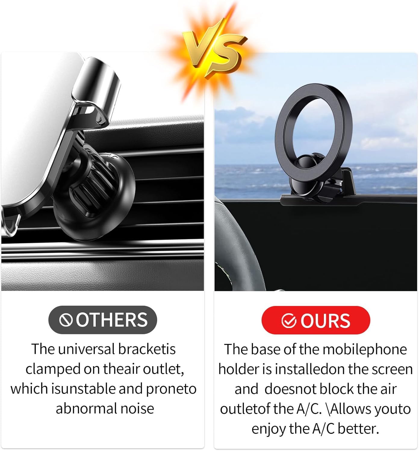| Additional Features | Strong Magnetic Adsorption(Magsafe), One-Hand Phone Attachment & Releasel, Don't Affect Air Vent |