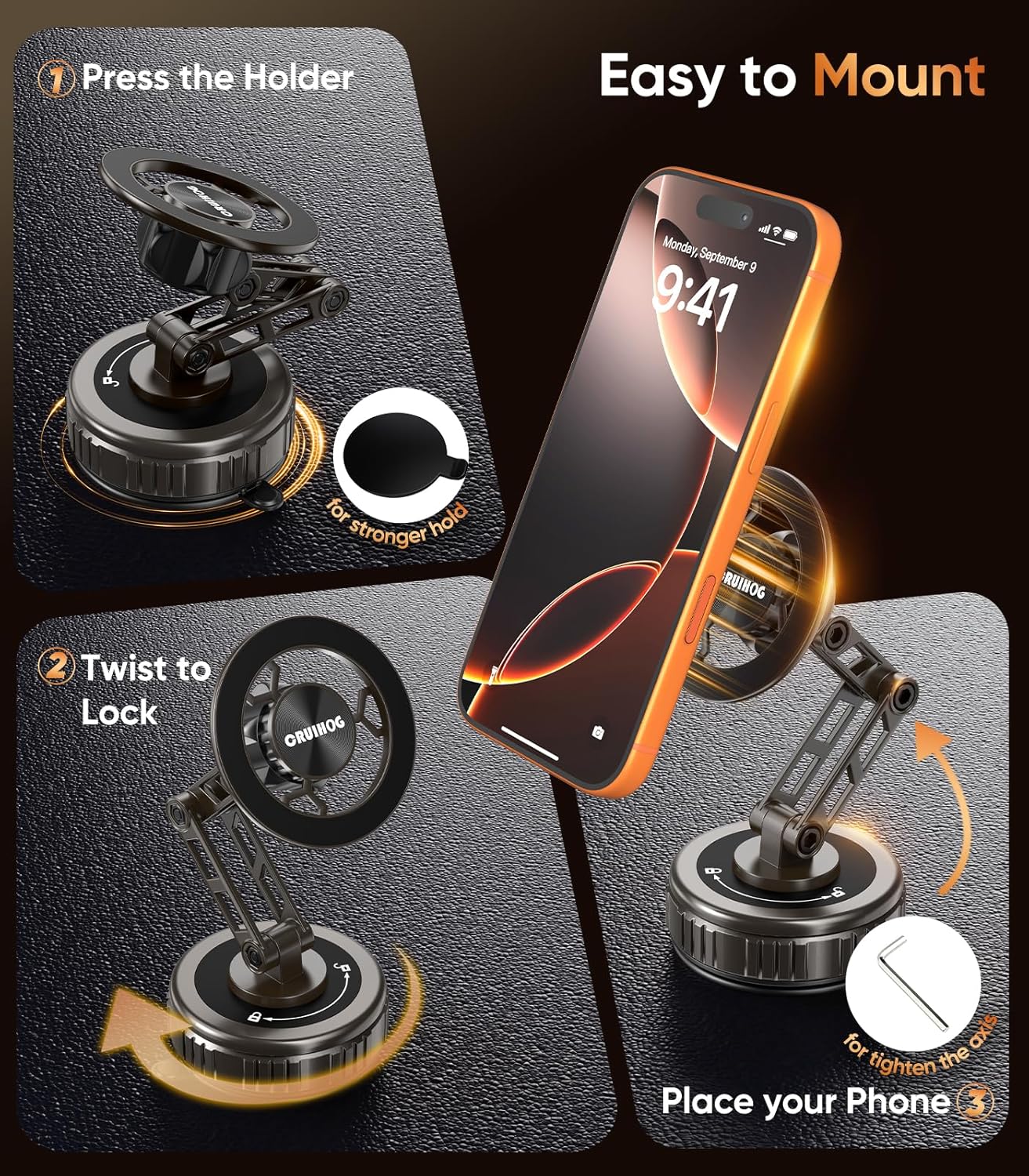 | Mounting Type | Dashboard /Windshield/Gym/Mirror/Flat wood surfaces/Smooth walls and marble |