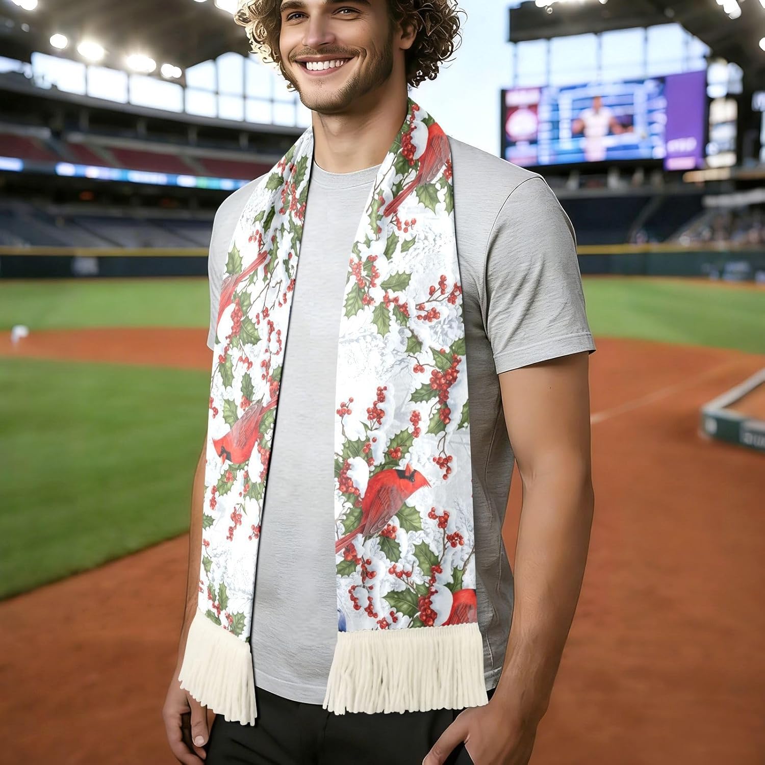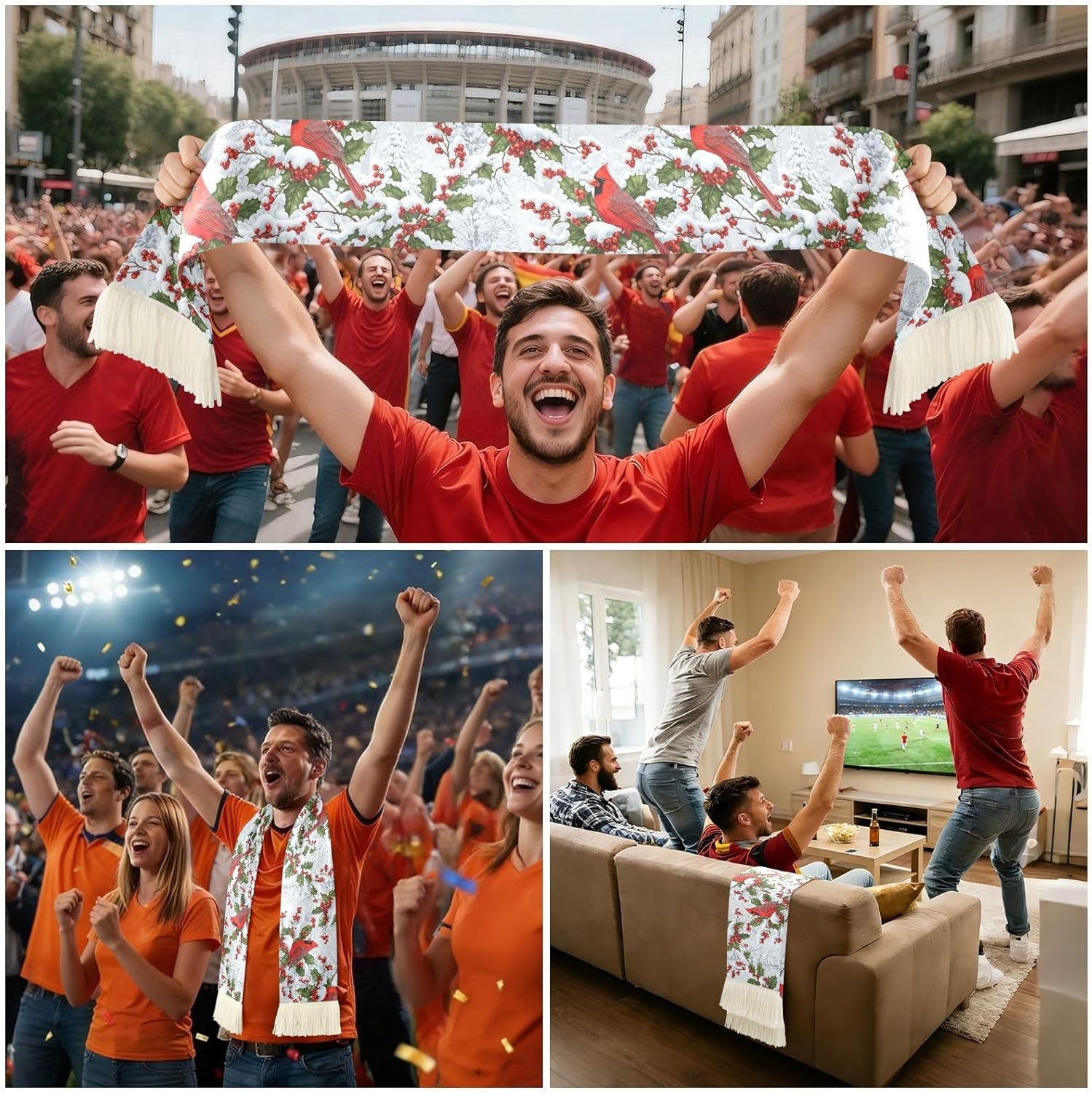 Whether you are cheering from the stands or watching the big match with friends, this sports fan scarf is built to keep up with your energy. Crafted from 100% polyester with a soft brushed texture, it feels smooth and comfortable against your skin, even during the most heated moments of the game.The quick-dry fabric absorbs sweat efficiently and dries fast, so you can stay focused on the action without distraction. Wave it high, display your rally slogan, or use it to wipe away sweat between plays. This scarf does it all.Measuring 70 x 7 inches with decorative fringe at both ends, it offers a bold, eye-catching look that stands out in any crowd. The vivid printed graphics resist fading through repeated washes, so your team colors stay bright all season long. in white and black, this soccer scarf pairs easily with a wide range of designs and team colors. It is a thoughtful gift idea for birthdays, holidays, or any occasion for the sports fan in your life.Care is simple: machine wash in warm water under 40C, hand wash, or iron as needed. No bleach or dry cleaning required.