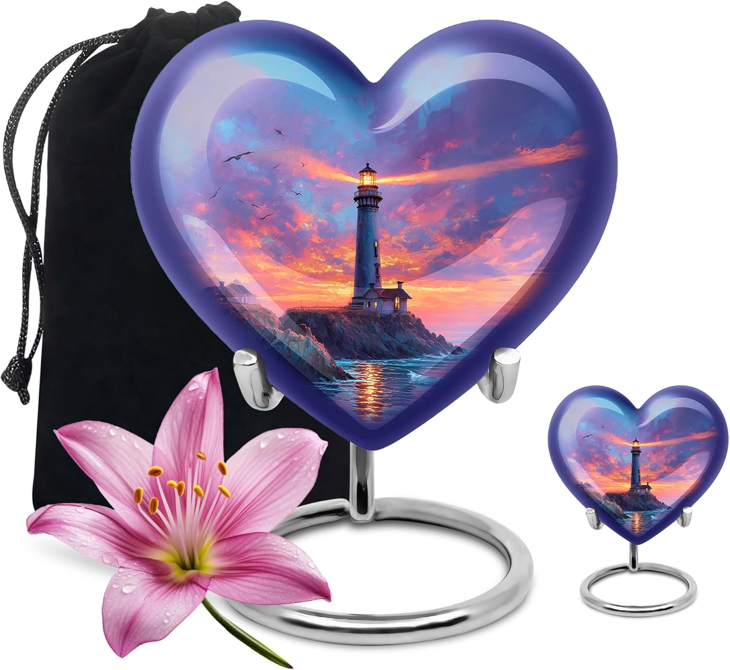 The YATHABHISA Lighthouse Cremation Urn is a beautifully handcrafted tribute designed to honor the memory of a beloved family member. Featuring a delicate Lighthouse in flight, this urn symbolizes joy, freedom, and the spiritual presence of those who have passed. Made from durable materials, it securely holds the ashes of a human adult, making it ideal for funeral ceremonies, burial, or home memorial displays. The medium size is perfect for honoring a father, mother, or loved one with elegance and respect. This Lighthouse urn for ashes is not just a functional container—it’s a meaningful expression of love and remembrance. Whether given as a memorial gift Lighthouse urn or chosen for personal reflection, it offers a timeless way to keep their spirit close. With its detailed design and secure lid, this cremation urn for human adult ashes provides peace, beauty, and dignity in one graceful form.
