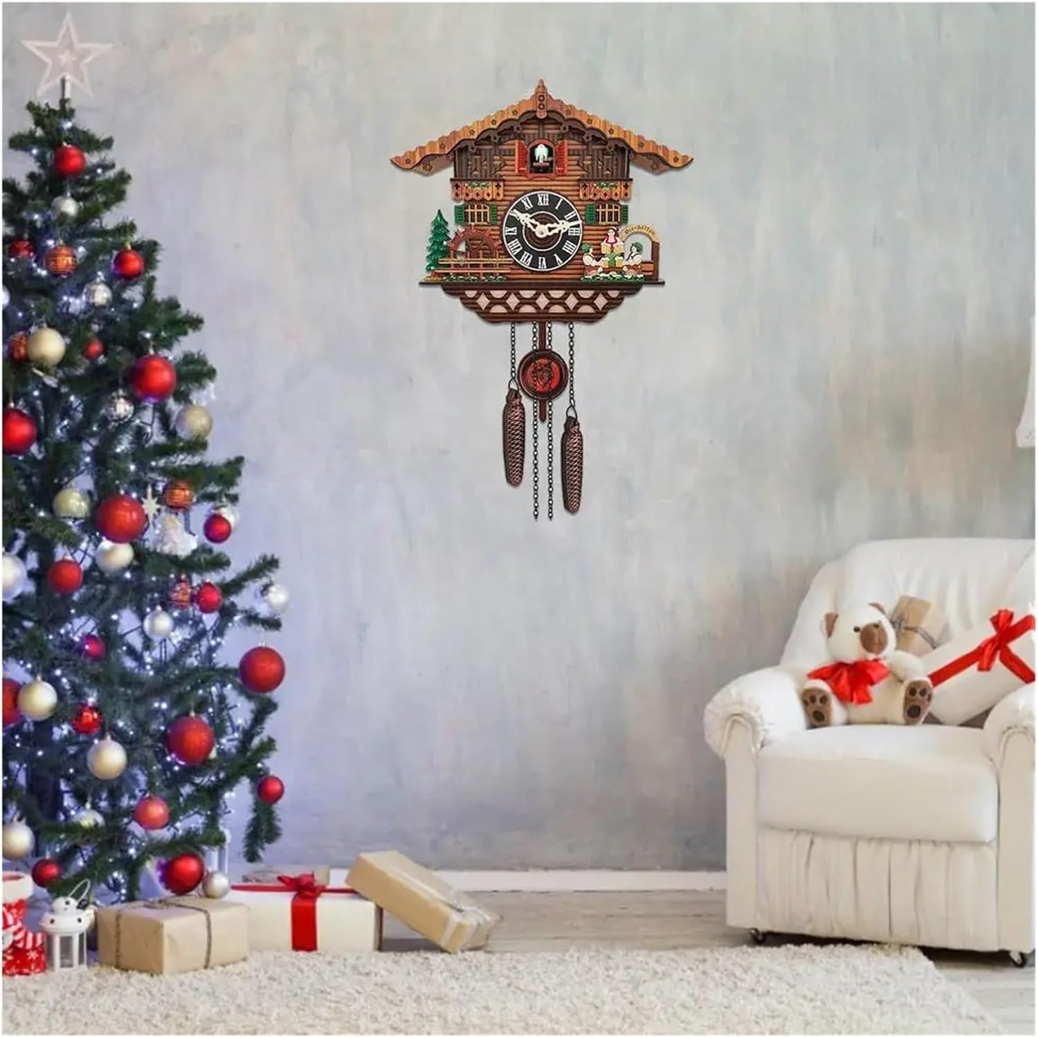 Bring charm and tradition into your home with our collection of cuckoo clocks. These charming timepieces not only provide accurate timekeeping but also add a touch of nostalgia and warmth to your decor.Not only are our cuckoo clocks visually appealing, but they also keep accurate time. The clock movements are carefully calibrated to ensure precise timekeeping, allowing you to rely on them for everyday useSpecification:Name:Cuckoo Wall ClockMaterial:woodensize:RC-01:about12.4*9.5*4inRC-02:about9.6*11.8*4inWeight:about1000gA: RC-01B: RC-02PackingList:1*CuckooClock1*Pendulum1*UserManual
