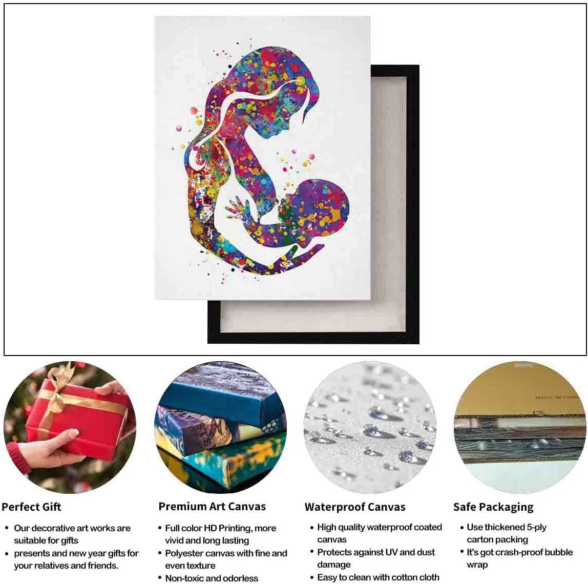 Breastfeeding Mother Watercolor Print Mom Newborn Doula Pregnancy Gift Obstetrician Nursing Baby Shower New Mum Art Clinic Midwife Gift- The inner frame of the decorative painting is made of high-quality pine wood, which is not deformed, and the binding is firm! Inner package contains accessories 1、 Decorative painting has been installed on the wooden frame 2、There is a buckle on the back of the frame, which can be suspended directly 3、Comes with dust-proof gloves to avoid contamination caused by hand contact with the product 4、 Comes with a level for measuring the installation position. 6、Bubble film packaging can effectively prevent transportation damage high definition printing High quality canvas printing, pictures and photos printed on high quality canvas, durable, crease-resistant and waterproof, inkjet printing, fade-resistant ink, high-end digital printing, light weight, easy to hang, Various sizes We provide 4 regular sizes for you to choose from, choose a larger size for a simple wall area or buy several sets at one time to match the decoration more beautifully. Attention to detail Our in-house design team constantly checks the quality and details of each piece of art to ensure that the products shipped are free of any flaws, available for any occasion you need Excellent decorative effect