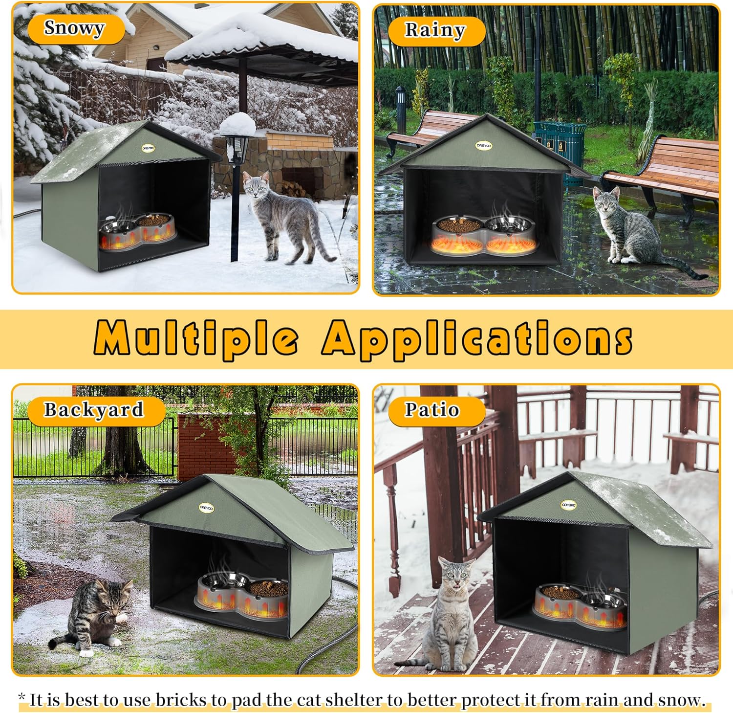 Dreyoo Cat Feeding Station and Heated Water Bowl Package List: 1 x Outdoor Cat Shelter 1 x Double Heated Cat Bowl