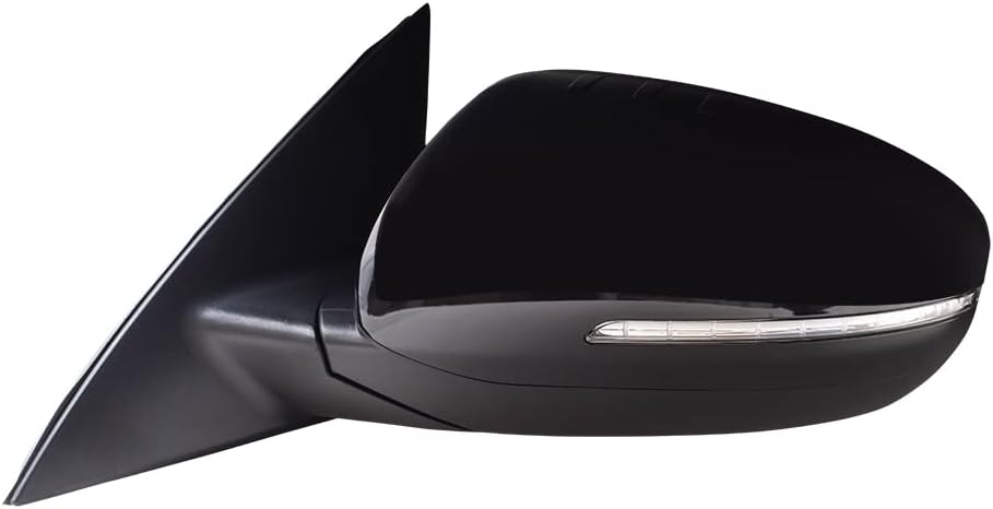 Driver's Power Side-View Mirror(IMPORTANT): The mirror FEATURES must be an exact match with your original factory mirror in order to install and operate correctly. NOTE: The housing surface is not finished. You must paint the item in order to match. FEATURES - Power - with Signal - Manual Folding - with Ready-to-Paint Black Finish - EXCLUDES Heat - with Mirror Glass - with HousingFITMENTAftermarket Replacement Part Compatible with: Optima (built in Korea ONLY) 2011 2012 2013