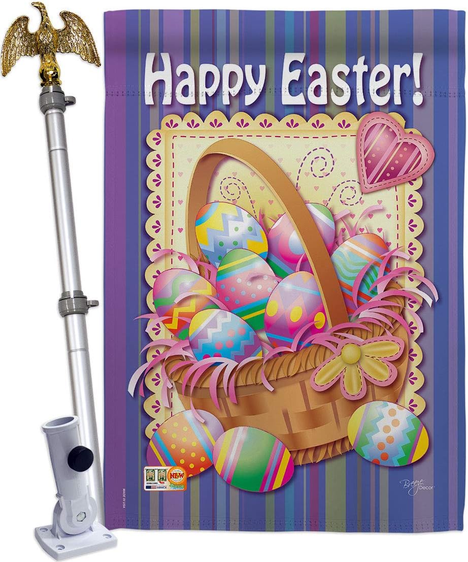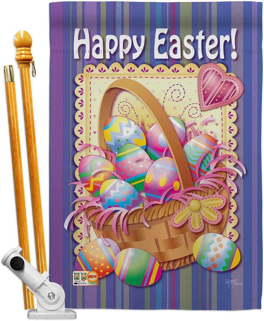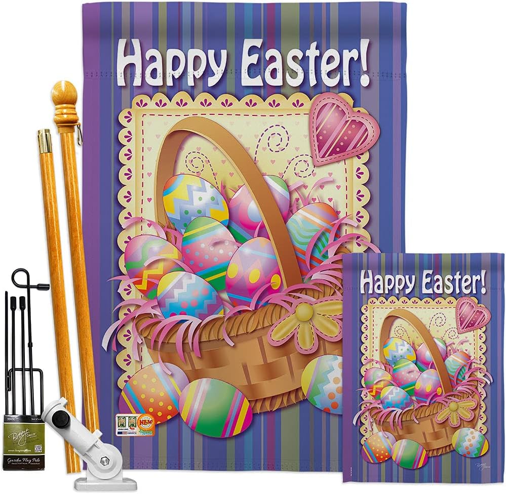 Easter Beautiful Large House Flag, Wooden Flagpole And Bracket – Wall Mount Complete Set with Wood Banner Dowel with String - 2" x 32" HangerBreeze Decor have variety of House Flag Set for all occasions. Uniquely design for hanging indoor or outdoor use. We are committed to offering you exceptional values. Our customers enjoy displaying our House Flag Set for longer periods. Specification: Theme: Easter Size: House Flag Set 28" x 40" Size: Decorative FlagPole With Adjustable Angle Flag Bracket Print: Double-Sided Readable: Readable Single Side Material: Weather Resistant Polyester 300 D Stitching: Double Stitched Display: Vertical Hang Type: Sleeve Artist: Kris Duncan Special Features: Origin: Made In USAPackage Include: 1 pc x Large House Flag 28" x 40" 1 pc x Decorative Flag Pole 1 pc x Adjustable Angle Wall Mount Flag BracketFor more than a decade, we’ve been dedicated to manufacturing flags with no comparison in quality and beautiful designs. Our flags are made with our Pro Guard material that is soft to the touch and designs can be read correctly on the flag. A feature that our customers will love. We are committed to using eco-friendly inks that won’t leave a foot print in our environment. MPN: BD-EA-HS-103040-IP-P3-03-S-US11-BD 03040 53040