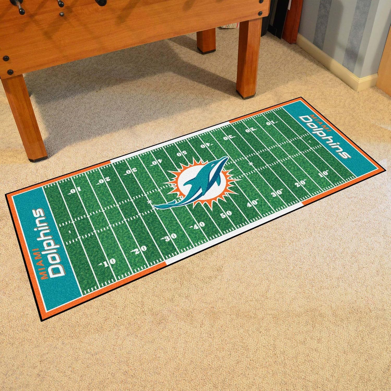 Always be at the field with Sports Licensing Solutions Football Field Runner Mat. With the same design as your favorite teams actual field you can always be with your team even at home. At 30 inches tall by 72 inches long this mat is perfect for any game room, man cave, or next to your bed. The carpet is a soft nylon so that is can hold up against moderate to high foot traffic. To make sure that the mat last for years we have used vinyl for the backing and then surged the edges of the mat. Made in the USA.