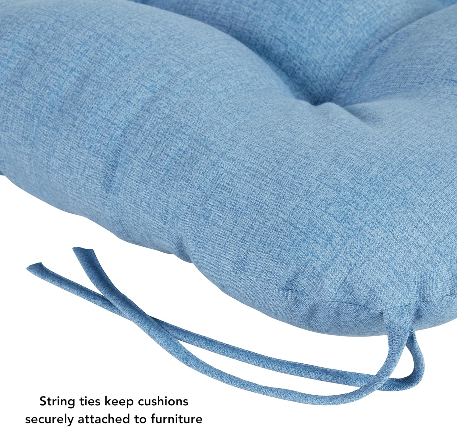 Enhance the look and feel of your patio furniture with these Greendale Home Fashions 20-inch Outdoor Dining Seat Cushions. These cushions fit most standard outdoor furniture, and come with string ties to keep cushions firmly attached to furniture. Circle tacks create secure compartments which prevent cushion fill from shifting. Each cushion is overstuffed for lasting comfort and durability with a soft polyfiber fill made from 100% recycled, post-consumer plastic bottles, and covered with a durable polyester outdoor fabric. A variety of colors and prints are available to enhance your outdoor decor. Cushion shells made in China, filled and finished in the USA. Spot clean as needed with mild diluted soap solution.Please measure your cushions before purchase to ensure a proper fit.Please Note: Cushion dimensions can be +/- 2 inches. Product will arrive in a slightly compressed state; please allow a few days for product to expand to final size listed in description.In an effort to reduce waste, your cushions will arrive in a recyclable box with no additional plastic waste.For best results, and to extend the life of your cushions we recommend storing them covered when not in use.