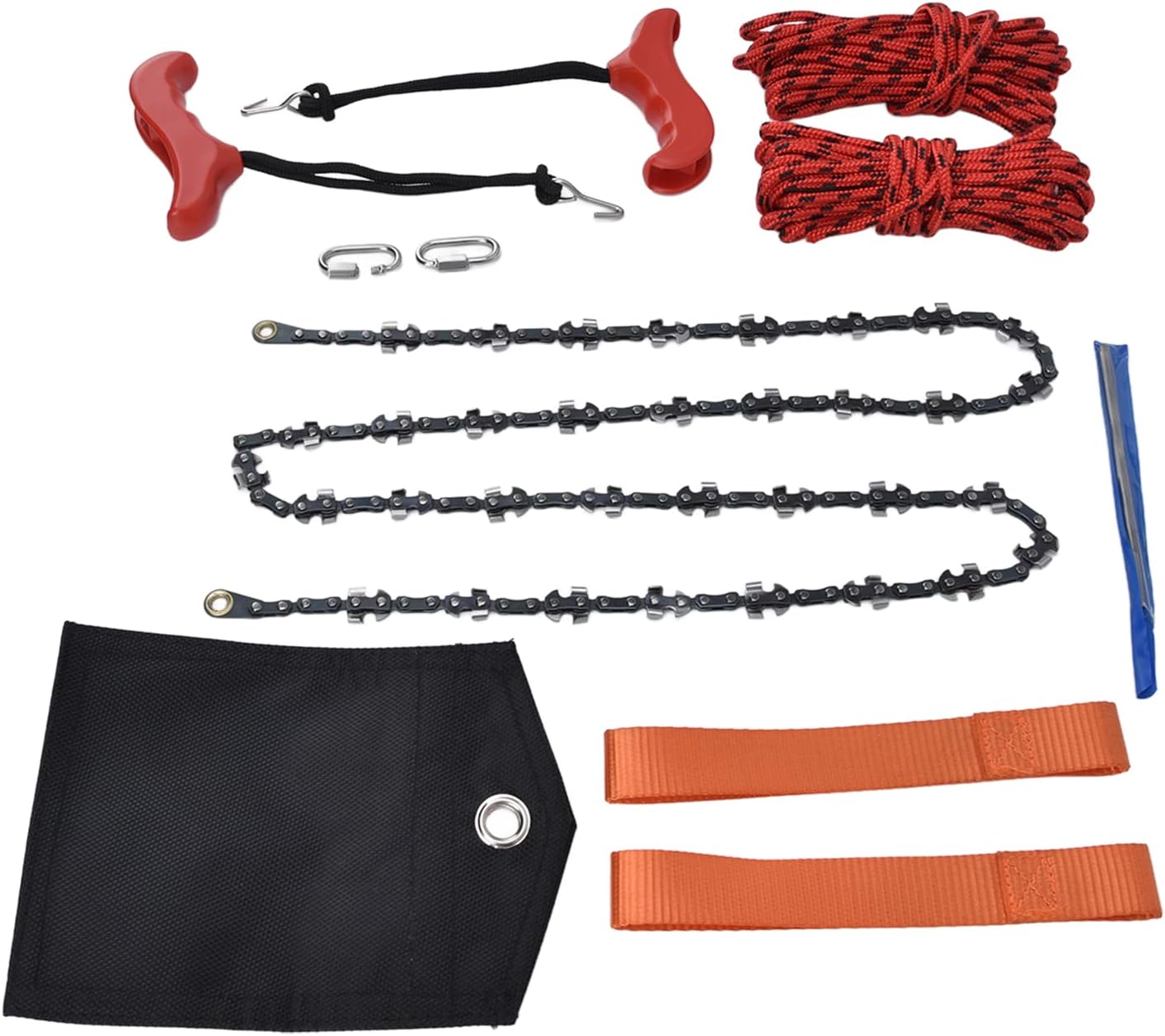 Item Type: Hand Chain SawMaterial: 65 Manganese SteelChainsaw Length: Approx. 53 InchesWeight: Approx. 615g/21.7ozScope of Application: Outdoor Camping, Tree PruningPackage List:1 x Chain2 x Button1 x Round File2 x Orange Strap2 x Handle2 x Red Rope1 x Storage BagNote:Manual measurement, please allow some errors.
