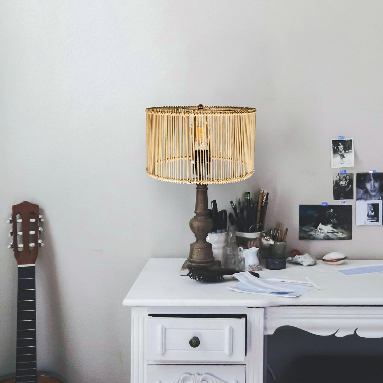 Elevate your home decor with this stunning handmade wicker lampshade. Crafted from natural materials, this boho-chic shade exudes warmth and rustic charm. Its intricate woven design casts captivating patterns of light and shadow, creating a cozy ambiance. Versatile and adaptable, it complements various lamp styles, from table lamps to floor lamps. With its organic texture and earthy tones, this lampshade effortlessly blends into bohemian, farmhouse, or coastal-inspired interiors. Embrace the beauty of handcrafted artistry and let this unique piece illuminate your living space with a touch of natural elegance. Dimensions: 11 inches in diameter, 7.08 inches in height.