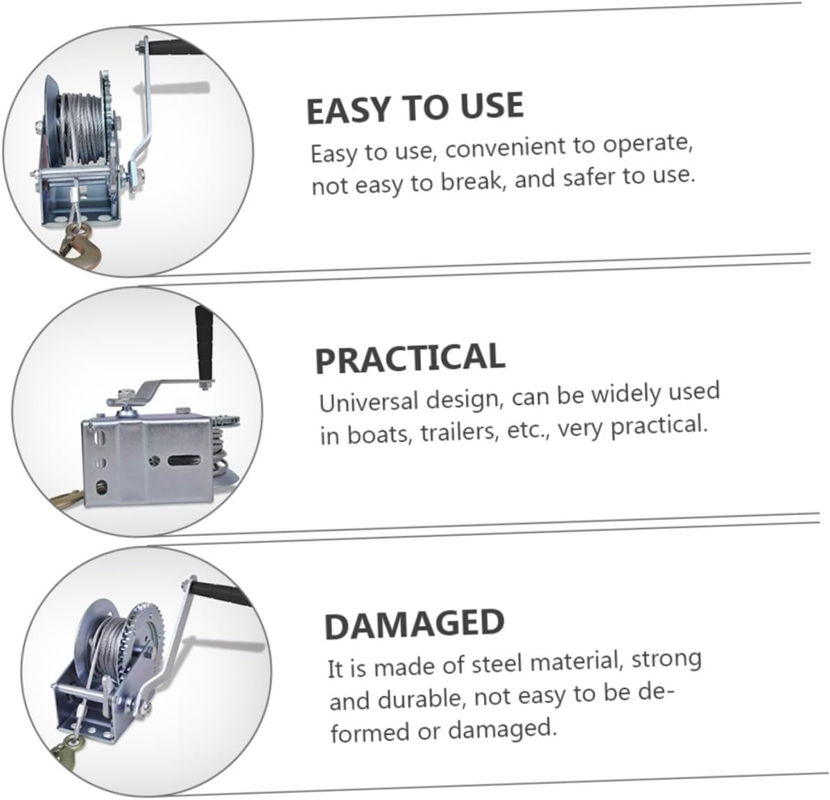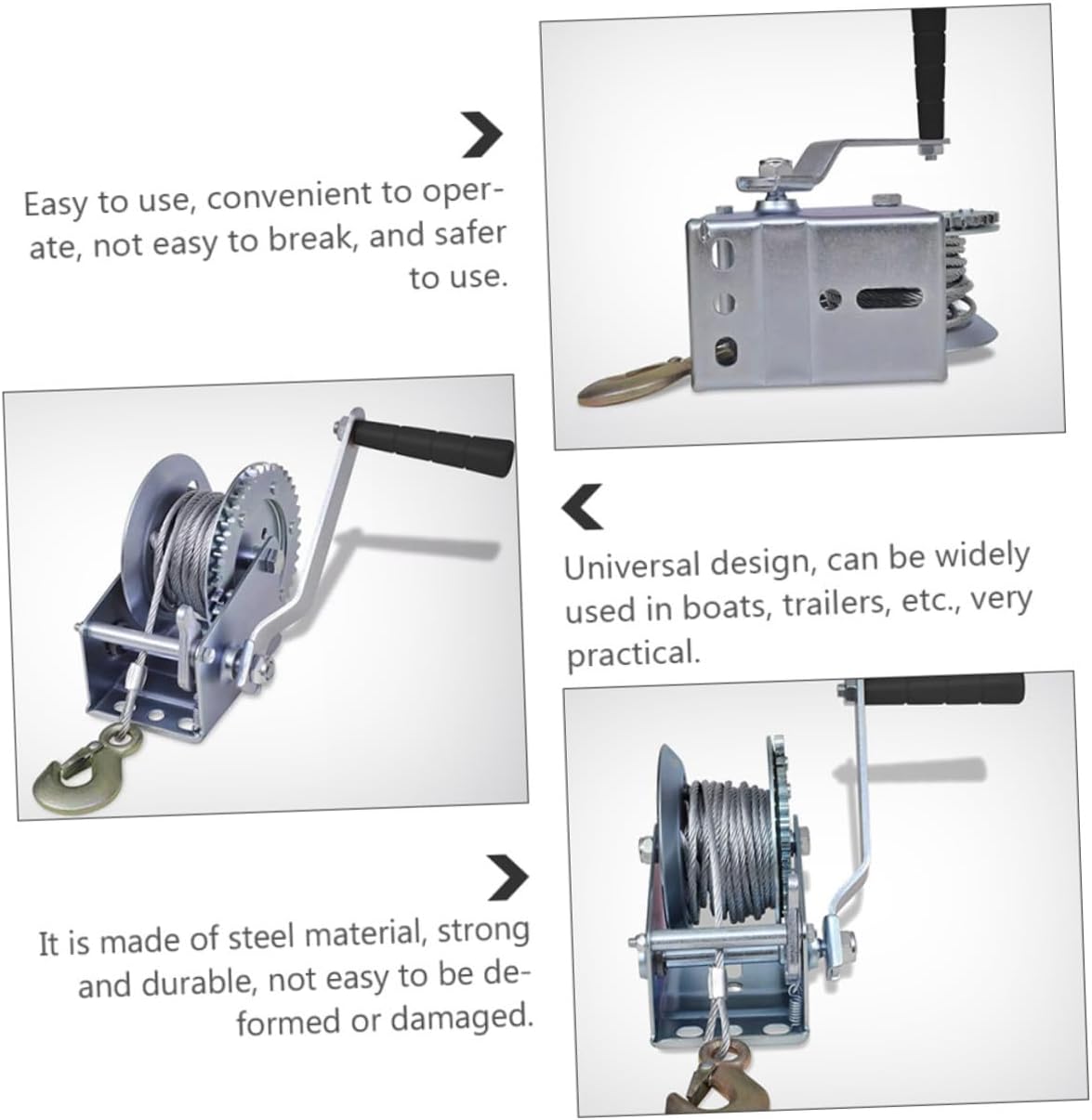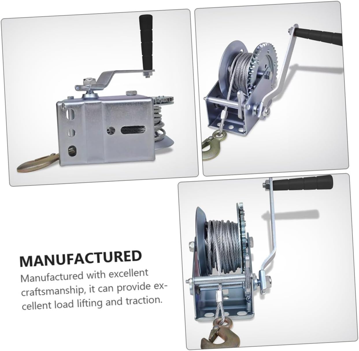 Package Include 1 x hand winch 1 x steel wire rope (10m) Features -Wire rope diameter: about 4 mm/0.16 inch heavy duty hand winch. -Breaking strength: about 1500kg Winch with Wire Rope. -Gear ratio: 4.1:1 hand crank strap gear winch. -Color: Silver. -Pull force: 1500 kg manual atv winch. -Product Info:Hand winch with steel cable -Material: Steel. -Cable length: about 10m/32.8ft trailer winch rope. - Size: 25.00X19.00X15.00cm/9.82X7.47X5.89in -Fine workmanship, excellent texture, maximum strength, long life, rust-proof and durable Boat Towing Winch. -The product has high strength, good texture, and can be durable for a long time, providing you with a better way of traction and handling winch rope. -Preferred materials, , safe, durable and practical. -It can be used to lift heavy objects and tow. It is an excellent vehicle accessory fast portable winch. -The design is great, the handle is arc-shaped, and the good structure helps reduce user fatigue and productivity trailer winch for boat.Goods Descriptiontruck winch It can serve you better and will bring you a better experience.heavy duty boat winch The heavy-duty steel hand winch has reasonable design, practical functions and strong carrying capacity, which can provide better traction and help you to carry it more easily.heavy-duty winch It is made of excellent craftsmanship, more durable, not easy to damage and wear, and has a