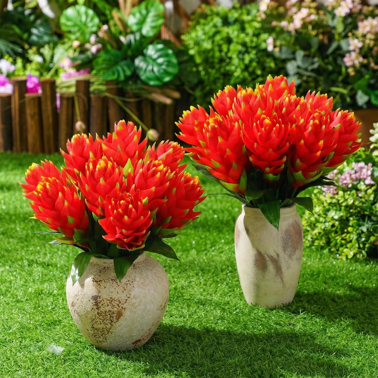Features: Bromeliad artificial tropical flower is versatile enough to complement any decor, whether in a courtyard, balcony, or terrace, effortlessly fitting into modern minimalist or natural pastoral styles. It's an ideal choice for home decoration across various scenes. Save time and effort as no watering or fertilization is needed Its vibrant color and durability add a touch of tropical charm to your garden. Weather resistant and UV protected, it remains beautiful summer or winter, it's a reliable pick for your garden decor. Specifications: Material: plastic Color: red Size: about 40 cm/15.75 inches Package includes: 3 x Bromeliad artificial flower Notes: Manual measurement, please allow slight errors on size. The color may exist a slight difference due to different screen displays