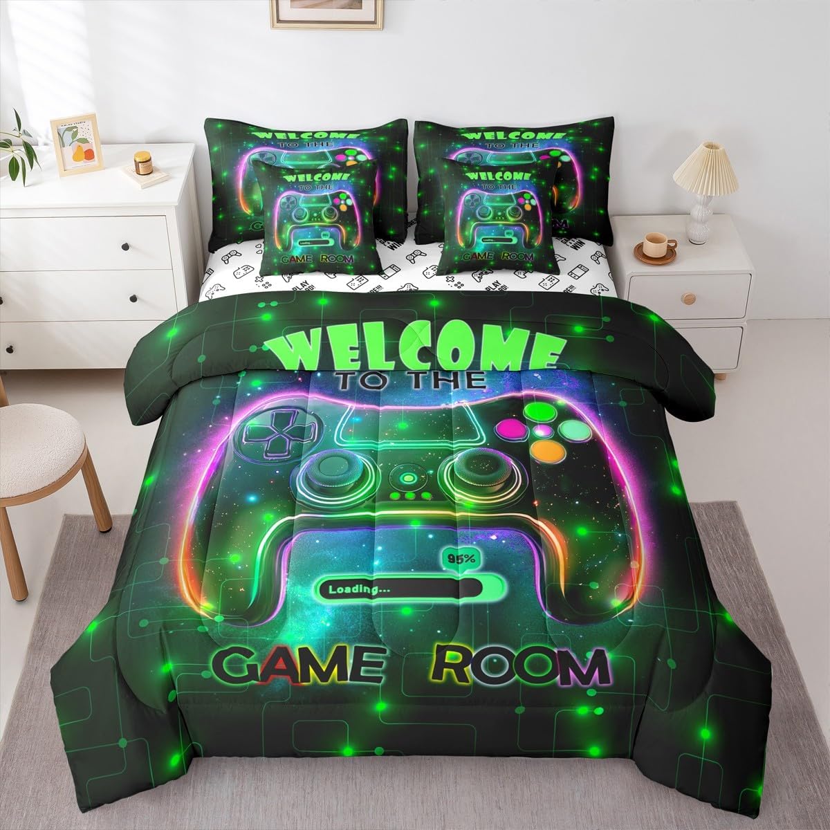 Welcome to our store. Our 7 piece bedding set is the all-in-one versatile bedding solution for any boys, girls, women, men, teens bedroom. Uniqueness is what we strive for in our store. You will find your favourites in a wide range of patterns and products. Size Information: Twin bed set includes 1 comforter 68'' x 90'', 1 fitted sheet 39'' x 75'', 1 flat sheet 66'' x 96'', 2 standard pillow cases 20'' x 30'', 2 square pillow covers 18" x 18". Full bed set includes 1 comforter 79'' x 90'', 1 fitted sheet 54'' x 75'', 1 flat sheet 81'' x 96'', 2 standard pillow cases 20'' x 30'', 2 square pillow covers 18" x 18". Queen bed set includes 1 comforter 90'' x 90'', 1 fitted sheet 60'' x 80'', 1 flat sheet 90'' x 102'', 2 standard pillow cases 20'' x 30'', 2 square pillow covers 18" x 18". King bed set includes 1 comforter 104'' x 90'', 1 fitted sheet 78'' x 80'', 1 flat sheet 90'' x 106'', 2 standard pillow cases 20'' x 36'', 2 square pillow covers 18" x 18". Cloudy Fluffy: Soft brushed microfiber keeps your family soft and comfortable. This all season bedding is designed to be lightweight and breathable for a good night's sleep. Unique Design: Our unique design reflects new trends in home textiles. Our comforter sets are ideal for seasonal bedroom makeovers. Perfect decoration for girls bedroom, boys bedroom, womens' bedroom, mens' bedroom. Vivid colors with digital printing methods. These distinctive designs are suited to a wide range of colour palettes, including rugs, curtains, headboards, furniture and all other decorative accessories. Great bedding for your family or friend, relative or boyfriend girlfriend, or to yourself, the item should be interesting and authentic.