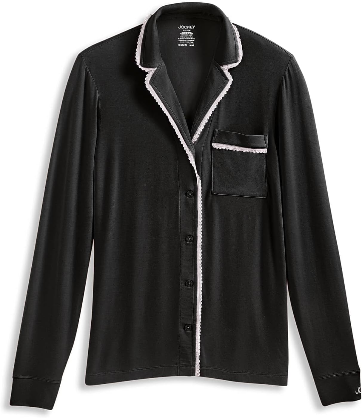 Experience premium comfort while you lounge or sleep in the Jockey Cooling Modal Notch Collar Long Sleeve Top & Pant Set. Crafted from renewable beech wood sources, Tencel Modal is dreamy-soft, smooth fabric that is naturally breathable and moisture wicking, keeping you cool throughout the night. The open notched collar, and flowy leg openings help enhance your freedom of movement, while the chest pocket adds a timeless touch. Plus, the scalloped elastic waistband offer a comfortable and secure fit when you re sleeping or getting ready for your day.
