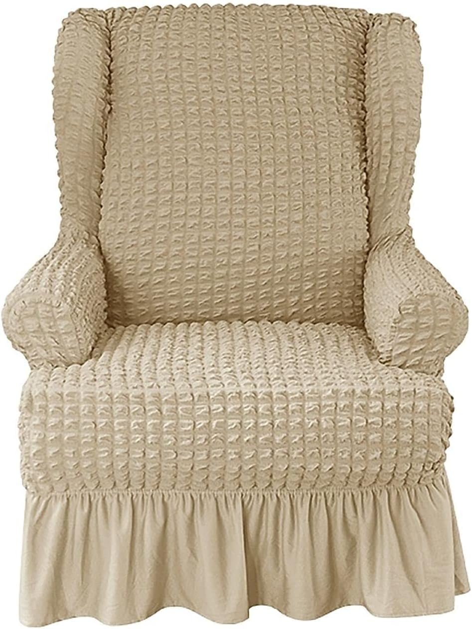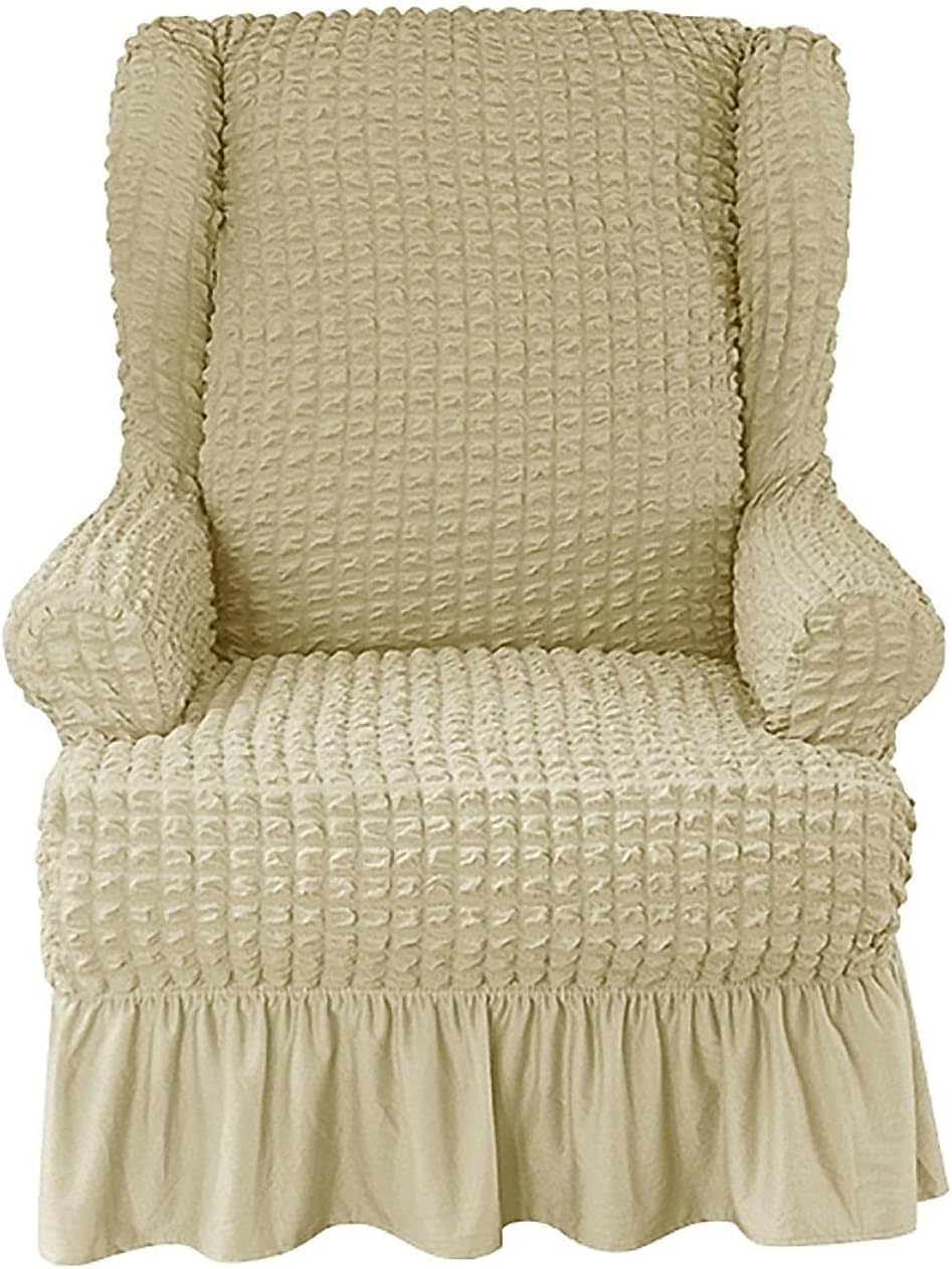 They are good protectors for homes with kids. Soft and durable fabric makes for a comfortable feel which will work over both leather and fabric furniture.Protect your furniture from spills, stains, wear and tear to prevent it from getting ruinedFeatures:1. One wing chair cover and seat cushion cover, easy to install and disassemble, separate the bottom cover and the cushion cover, and will not slip off easily, suitable for wing chairs with separate cushions and chairs2. In order to purchase without any worries, please accurately measure the wing at home and compare with the size chart before purchasingPackage Includes:1 x Wing Chair Cover