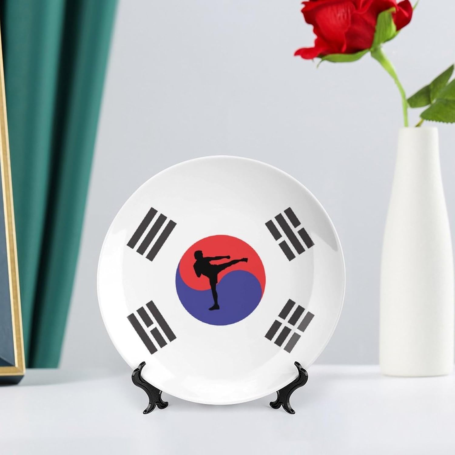 This decorative ceramic plate is the ideal way to add an elegant touch to your home decor. Whether placed on a stand or hung on the wall, its intricate design and vibrant colors make it a standout piece in any room. Crafted from bone china ceramic, this ceramic plate for display features a smooth finish that complements a wide range of interior styles. With both a stand and wall hanger included, this versatile plate is suitable for showcasing your personal style