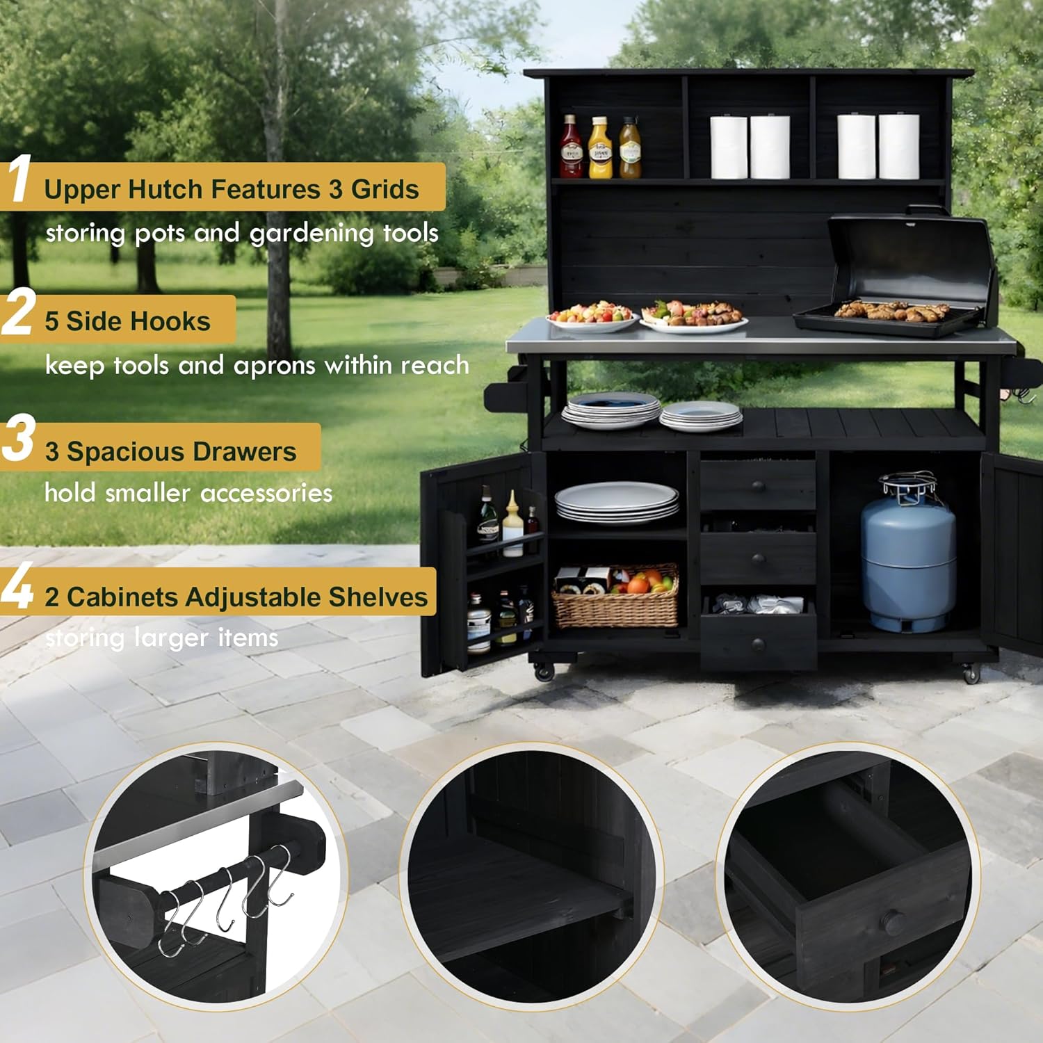 This all-in-one solution eliminates the need for multiple pieces of furniture, saving you space and money while enhancing your outdoor living experience. Product Name: 65''H Large Garden Storage Potting Bench with Lockable Wheels Overall Product Dimension: Overall: 47.2x19.3x65inch(LXWXH) Tabletop size: 45.3x19.3inch(LXW) Overall Weight: 78.26lbs. Weight Capacity: Tabletop: 110lbs Material: Fir Wood Pieces Included: 1 Potting Bench Color: Natural/Black/Gray Assembly Required: Yes Additional Tools Required: All Tools Included Country of Origin: China Notes: Manual measurement has been used, there may be some reasonable error. All the pictures are taken by actual samples, slight chromatic aberration may occur due to lighting or display.