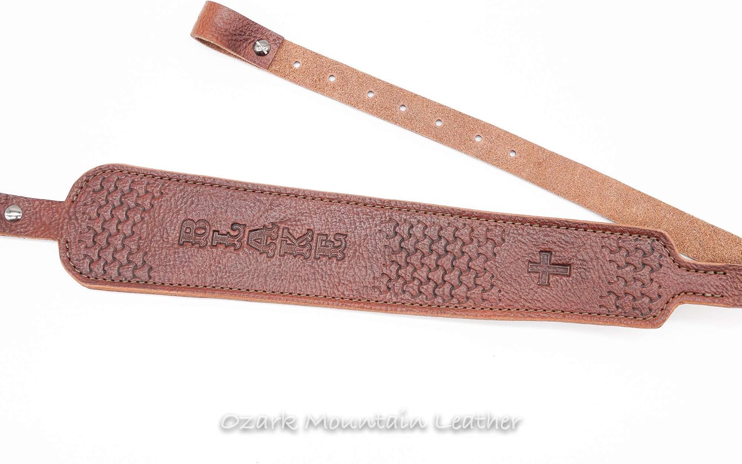 ****These are handmade at the time of purchase here in the USA. See the time frame on the side of the listing for when this item should ship.****. Handmade Leather gun or rifle sling. This rifle sling is two pieces of 9oz leather sewn for added durability, shoulder padding, and longevity. Comes with Chicago screws for attachment to the rifle. Fits a 1-inch swivel (sling swivels NOT included). This listing is for Austin Brown color. See photos for color options. You will be getting a rifle sling with a name up to 10 letters and if you would like one of the character stamps (see drop down for options). This Cobra-style rifle sling is customized and handmade at the time of purchase. Overall length is 42 inches Widest point 3 inches Strap measures 7/8 inches Shoulder strap is 15 inches long. Sueded on the backside for added comfort and to minimize slippage. These make great groomsmen gifts, corporate gifts, or great gifts for the hunter in your life. We try to source all leather in the USA and each product is made here in the USA at the time of order. These are handmade to order at the time of purchase no sling is pre-made. When placing your order, it will tell you how many days this product is to be made. *****Please DOUBLE CHECK SPELLING prior to placing an order.**** If you choose more than one character stamp the placement will vary due to name size and letters used. If I have any questions about an order I will contact you. Thanks for looking and purchasing one of our handmade FOR YOU rifle slings. Please note the longer the name the less tooling there will be. If you choose a name or initials with a number in it a different font will be used. Ozark Mountain Leather